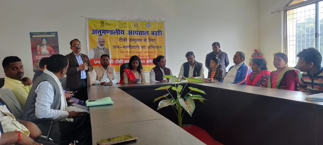 टीम एबीएन, बरही। प्रखंड परिसर स्थित कार्यालय में डॉ प्रकाश ज्ञानी की अध्यक्षता मे टीबी उन्मूलन को लेकर जनप्रतिनिधिओं के साथ बैठक का आयोजन किया गया। बैठक का संचालन डॉ प्रकाश ज्ञानी ने किया।उन्होंने जनप्रतिनिधिओं को संबोधित करते हुए कहा कि सरकार टीबी उन्मूलन के लिए प्रतिबद्ध है। इसके लिए लोगों को जागरूक करने की जरूरत है। जागरूक करने को लेकर टीबी मरीजों को ढूंढ़ने का काम जोर-शोर से किया जा रहा है।