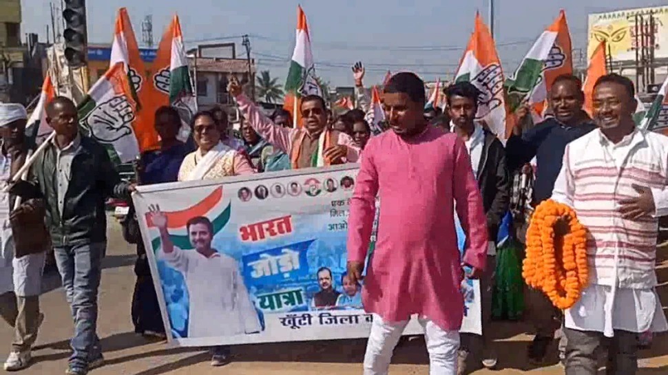 टीम एबीएन, खूंटी/ रांची। खूंटी में कांग्रेस पार्टी ने भारत जोड़ो कार्यक्रम के तहत दतिया से कचहरी मैदान स्थित बिरसा पार्क तक पैदल मार्च निकाला। इस कार्यक्रम में नारेबाजी करते हुए कांग्रेस का झंडा थामे जिलाध्यक्ष रवि मिश्रा के नेतृत्व में कार्यकर्ताओं ने भगवान बिरसा मुंडा को माल्यार्पण कर कार्यक्रम को समाप्त किया।