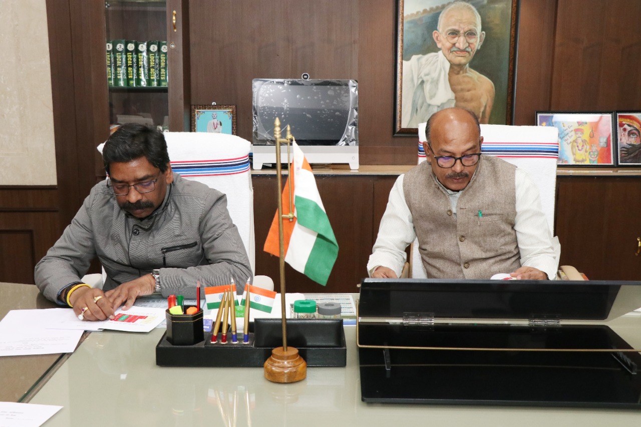 टीम एबीएन, रांची। झारखंड विधानसभा में विधानसभा अध्यक्ष रबीन्द्र नाथ महतो की अध्यक्षता में आयोजित विधायक दल के नेताओं की बैठक में मुख्यमंत्री हेमंत सोरेन सम्मिलित हुए। बैठक में आगामी 19 दिसंबर से 23 दिसंबर 2022 तक आयोजित होने वाले पंचम झारखण्ड विधानसभा का दशम (शीतकालीन) सत्र के सुचारू संचालन हेतु विचार-विमर्श किया गया।