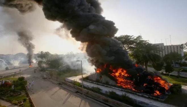 बुधवार सुबह-सुबह प्रदर्शकारियों ने पाकिस्तान के प्रधानमंत्री शहबाज शरीफ के घर में आग लगा दी। पुलिस की गाड़ी फूंक दी। स्कूल-कॉलेज बंद कर दिए गए हैं। आज होने वाली परीक्षाएं रद्द कर दी गयी है। कई शहरों में इंटरनेट को स्लो कर दिया गया है।