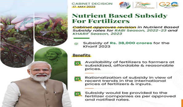 इसके साथ सरकार ने 2022-23 के रबी सत्र के तीन महीनों (जनवरी-मार्च 2023) के लिए फॉस्फेट एवं पोटास (पी एंड के) नाइट्रोजन तथा सल्फर वाले रासायनिक उर्वरकों पर सब्सिडी (एनबीएस) की दरों में संशोधन के प्रस्तावों को आज मंजूरी दी।