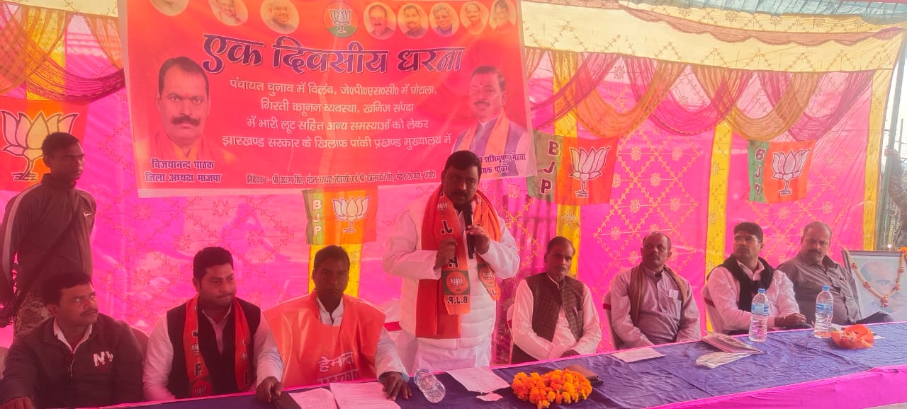 पांकी। पांकी विधायक कुशवाहा डॉ शशिभूषण मेहता ने कहा कि झारखंड की हेमन्त सरकार सिर्फ ट्रांसफर और पोस्टिंग में लिप्त है।झारखंड के अबतक के सबसे विफल सरकार के रूप में यह सरकार जानी जायेगी। इस सरकार में पूरे राज्य में भ्रष्टाचार चरम पर है, चारों तरफ लूट खसोट का आलम है। बिना चढ़ावा के कहीं जनता का कोई काम नहीं हो रहा है। वे शनिवार को झारखंड सरकार की विफलता, पंचायत चुनाव में हो रहे विलंब, जेपीएससी घोटाला जैसी कई ज्वलंत समस्याओं को लेकर पार्टी द्वारा प्रखंड कार्यालय परिसर में आयोजित धरने में बतौर मुख्य अतिथि लोगों को संबोधित कर रहे थे। उन्होंने कहा कि युवा बेरोजगार दर-दर भटक रहे हैं। सरकार ने हर साल पांच लाख रोजगार देने का वादा किया था, लेकिन इनके राज में ट्रांसफर पोस्टिंग का उद्योग चल रहा है।कानून व्यवस्था चरमरा गई है।जनता बुनियादी सुविधाओं के लिए तरस रही है। उन्होंने कहा कि यह सरकार पंचायत चुनाव नहीं कराना चाहती है। चुनाव को टालकर यह सरकार लोकतंत्र का गला घोट रही है और गांव की जनता को उनके अधिकारों से वंचित रखना चाहती है। केंद्र सरकार ने डीजल और पेट्रोल के दामों में कमी की। लेकिन यह निक्कमी सरकार ने एक रुपया डीजल पेट्रोल का दाम नहीं घटाया। राज्य में विकास कार्य पूरी तरह ठप्प है। पदाधिकारी पैसे लेकर युवा लोगों को पेंशन स्वीकृत कर दे रहे हैं और योग्य लाभुक मुंह ताक रहे हैं। इस मामले को मैं विधानसभा के पटल पर रखूंगा। उन्होंने अपने निजी खर्च पर विधानसभा क्षेत्र के 51 जोड़ों की शादी कराने की घोषणा की। भाजपा के ओबीसी सेल के पूर्व प्रदेश मंत्री अजय गुप्ता ने कहा की यह सरकार गरीब विरोधी सरकार है। इस सरकार में गरीब, बेरोजगारों का भला होने वाला नहीं है। किसान बेहाल हैं।किसानों का अगले वर्ष का भी धान का पैसा बकाया है, जिसे सरकार आज तक भुगतान नहीं की। पूरे राज्य में अराजकता की स्थिति है। कार्यक्रम के पश्चात विधायक ने राज्यपाल के नाम प्रेषित बीडीओ को ज्ञापन सौंपा। मौके पर विधायक प्रतिनिधि सुनील गुप्ता, संतु सिंह, रंजय ठाकुर, लोहरसी मंडल अध्यक्ष अरुण सिंह, शत्रुद्धन सिंह, युवा मोर्चा पूर्व अध्यक्ष सत्येंद्र सिंह, प्रसिद्ध सिंह, सांसद प्रतिनिधि सत्यप्रकाश पाण्डेय उर्फ चुनमुन पांडेय, ओमप्रकाश दुबे, ललन भुईयां, मधु सिंह सहित सैकड़ों लोग उपस्थित थे। कार्यक्रम की अध्यक्षता मंडल अध्यक्ष बाल्मिकी सिंह ने किया, जबकि संचालन मंडल महामंत्री श्यामनंदन ओझा ने किया।