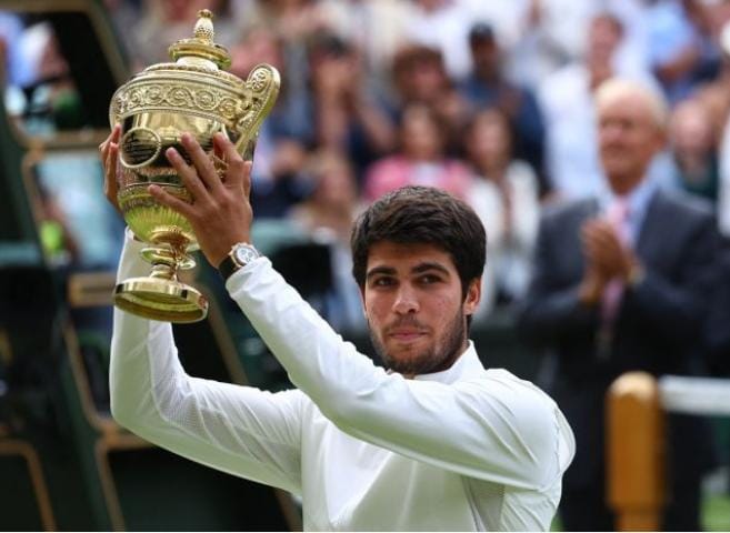 पांच सेट तक चले फाइनल में वर्ल्ड नंबर-वन अल्काराज ने वर्ल्ड नंबर-दो सर्बिया के नोवाक जोकोविच को 1-6, 7-6(6), 6-1, 3-6, 6-4 से हरा दिया। 20 साल के अल्काराज विंबलडन जीतने वाले स्पेन के तीसरे खिलाड़ी बने।