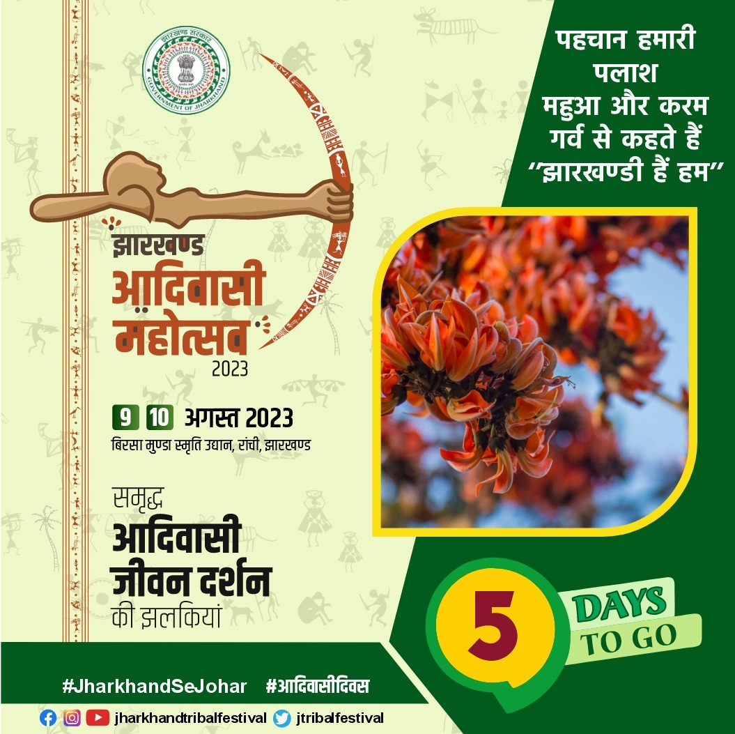 टीम एबीएन, रांची। विश्व आदिवासी दिवस पर आयोजित किये जानेवाले झारखंड आदिवासी महोत्सव-2023 में झारखंड की जनजातीय कला-संस्कृति का अद्भुत, अनूठा समागम देखने को मिलेगा।