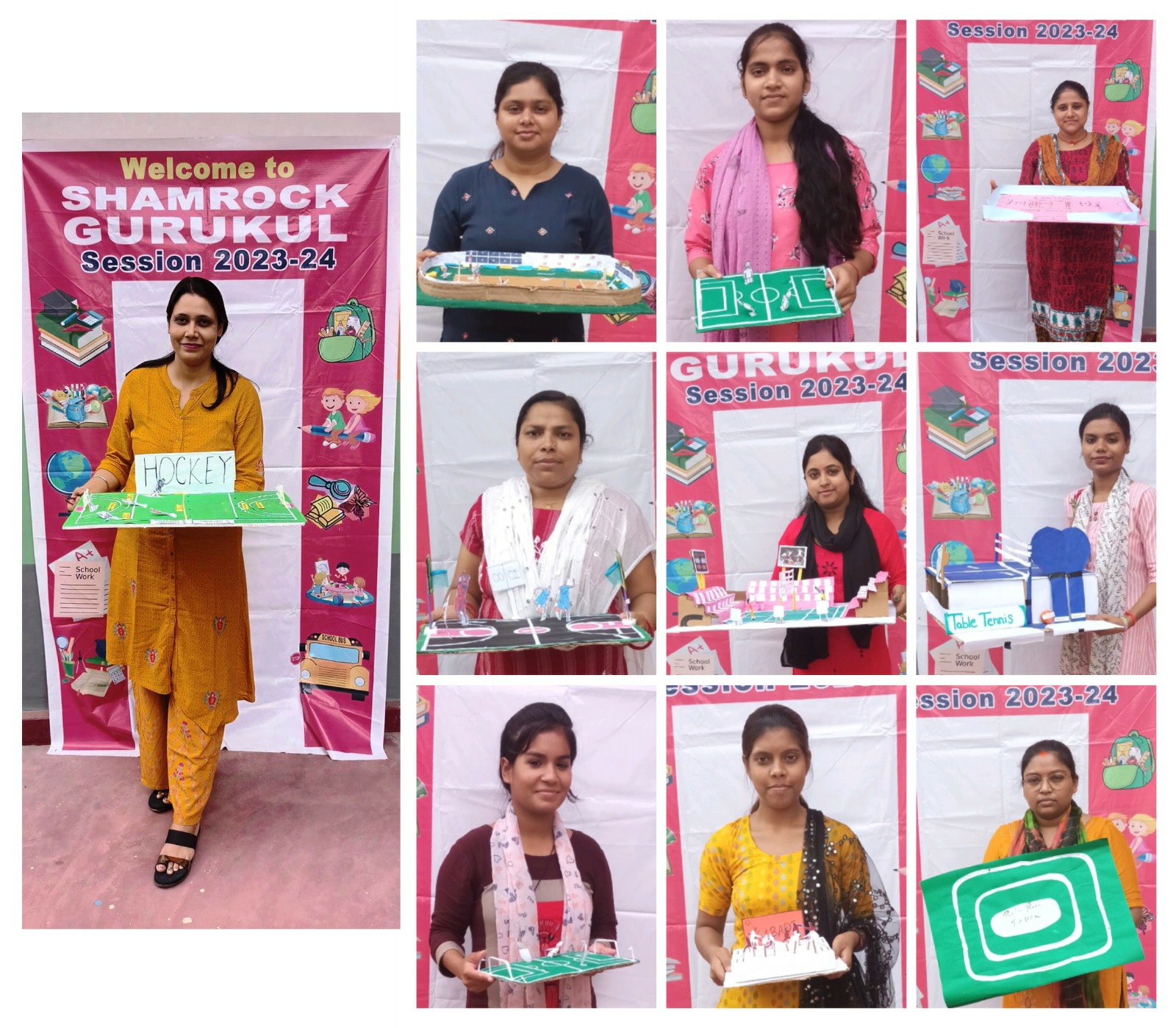 रागिनी सिंह ने टेबल टेनिस, संजीता और अंजली ने कबड्डी, एकता सिंह ने बैडमिंटन, श्रद्धा सुमन ने क्रिकेट, रानी कुमारी ने बैडमिंटन, श्रेया और प्रिया कुमारी ने फुटबॉल, लिली और वेदलाता ने एथलीट ट्रैक, उजमा परवीन ने चेस और प्राचार्या सीमा सिंह ने हॉकी का मॉडल बनाया।