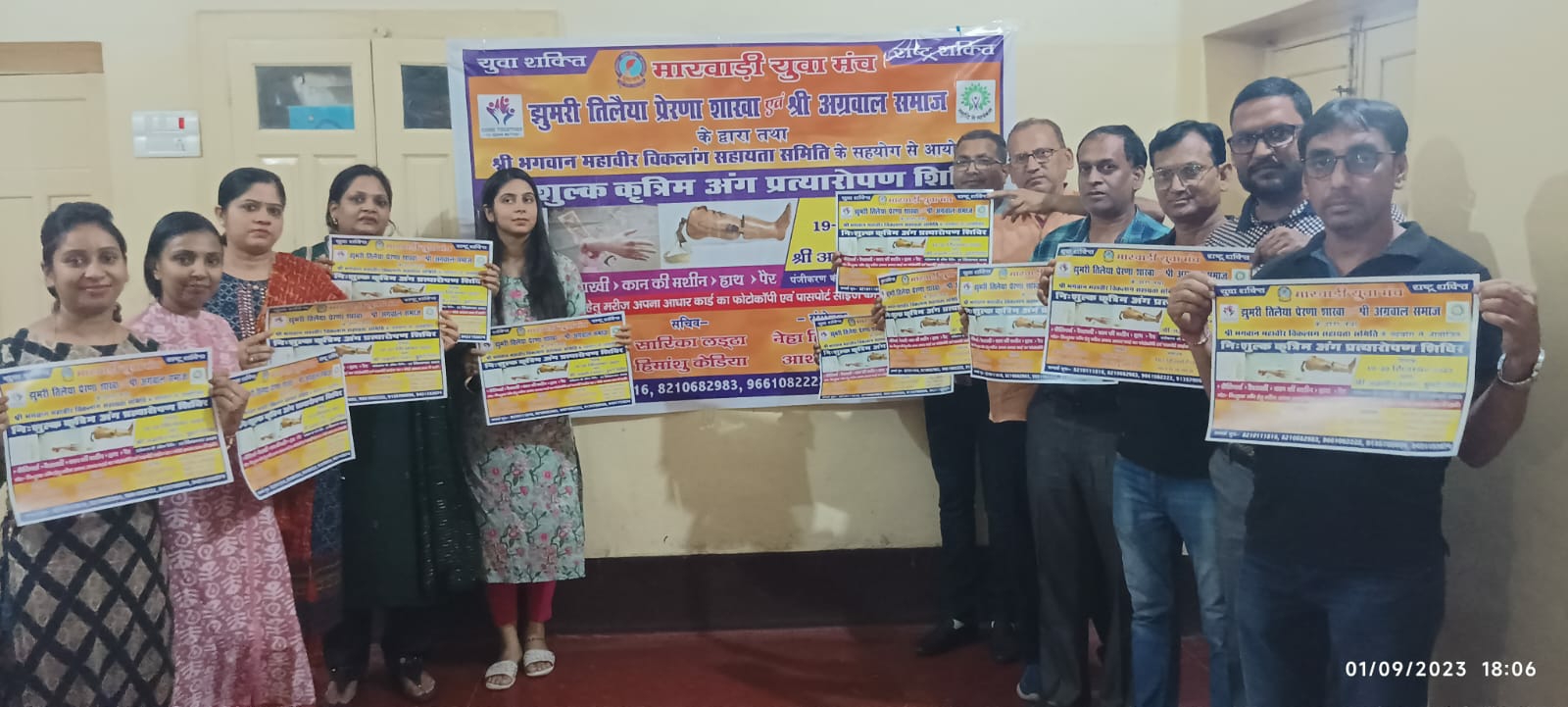 टीम एबीएन, झुमरी तिलैया। मारवाड़ी युवा मंच की प्रेरणा शाखा एवं श्री अग्रवाल समाज के संयुक्त तत्वावधान में तथा श्री भगवान महावीर विकलांग सहायता समिति के सहयोग से नि:शुल्क कृत्रिम अंग प्रत्यारोपण शिविर 19 और 20 सितंबर को श्री अग्रासेन भवन में आयोजित किया जायेगा। इस शिविर को लेकर दोनों संगठनों की बैठक हुई और इसके बाद पोस्टर का विमोचन किया गया।