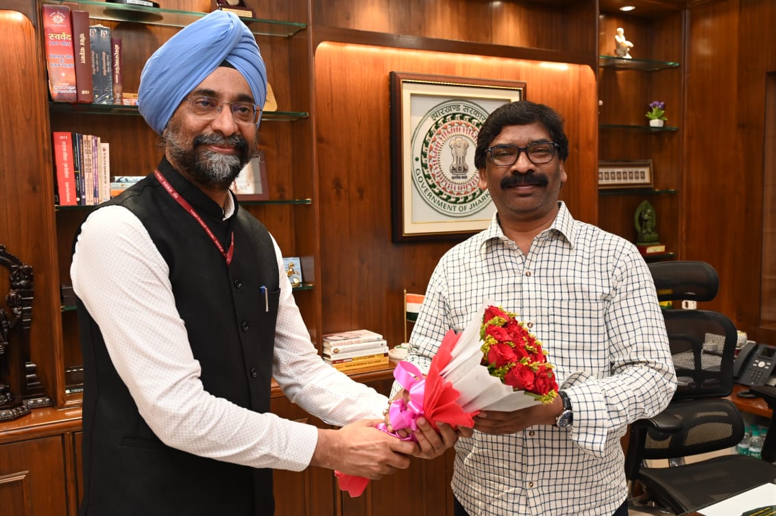 टीम एबीएन, रांची। मुख्यमंत्री हेमन्त सोरेन से आज कांके रोड रांची स्थित मुख्यमंत्री आवासीय कार्यालय में रांची रेल मंडल के डीआरएम जसमीत सिंह बिंद्रा एवं सीनियर डीसीएम श्री निशांत कुमार ने मुलाकात की।
