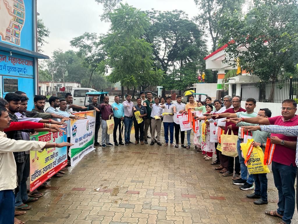 कार्यक्रम के उपरांत चिल्ड्रन पार्क के पास मारवाड़ी युवा मंच, प्रशासनिक अधिकारी, कर्मचारी, छात्रों ने यह शपथ ली कि वह ना गंदगी न करेंगे और ना किसी को करने देंगे। बाद में अशोका होटल के पीछे सब्जी बाजार में पॉलिथीन में सब्जी ले जा रहे हैं लोगों को थैला नगर प्रशासक एवं मंच के सदस्यों ने वितरण किया।