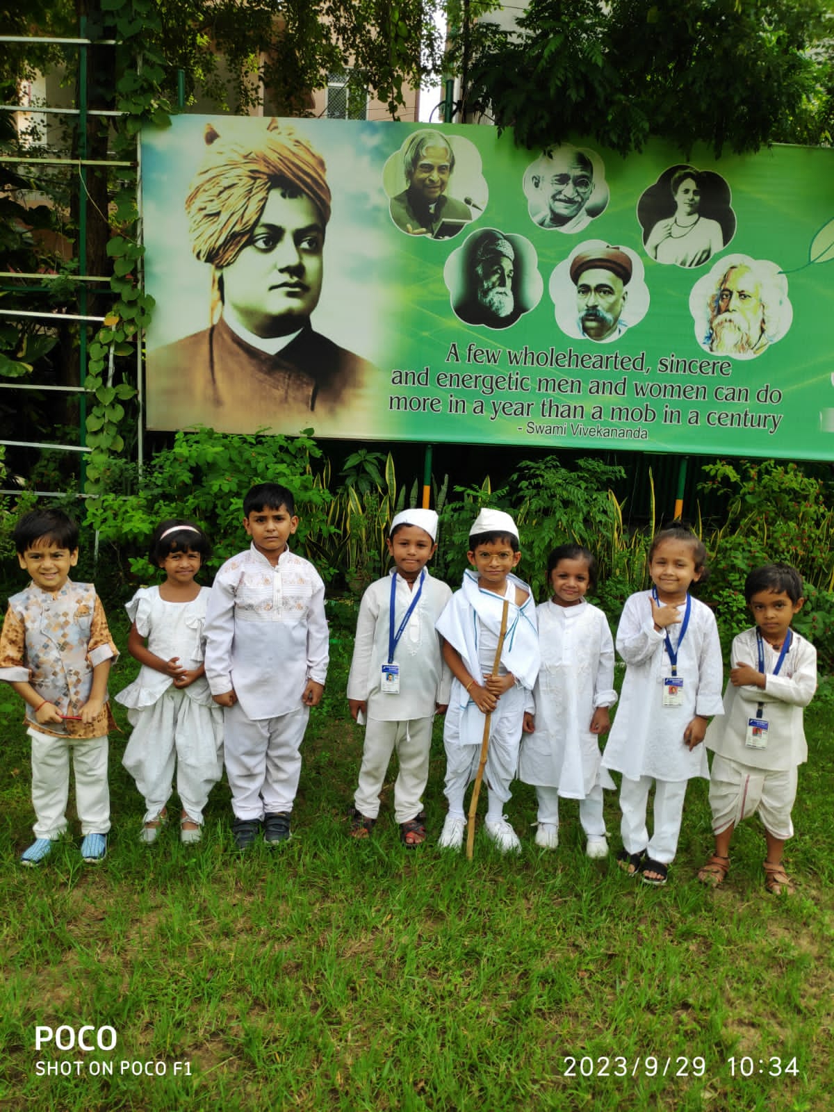क्लास 1 के बच्चों ने कविता पाठ प्रतियोगिता में हिस्सा लिया और क्लास 2 के बच्चों ने सुलेख प्रतियोगिता में भाग लिया। स्कूल की प्रिंसिपल कंचन अग्रवाल ने दोनों महापुरुषों के तस्वीर पर श्रद्धा सुमन अर्पित करके कार्यक्रम की शुरुआत की।