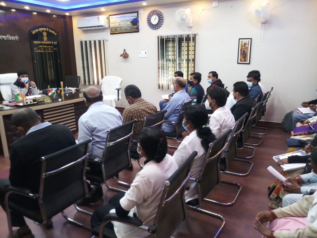 कोडरमा। अनुमंडल पदाधिकारी मनीष कुमार की अध्यक्षता में अस्पताल प्रबंधन सदर अस्पताल कोडरमा की बैठक की गयी। अनुमंडल पदाधिकारी ने कहा कि मरीजों का अधिक से अधिक गोल्डेन कार्ड बनायें। उन्होंने समीक्षा के दौरान पाया कि वैक्सीनेशन की रफ्तार धीमी है, जिसपर नाराजगी व्यक्त करते हुए कहा कि वैक्सीनेशन को प्राथमिकता के आधार पर ज्यादा से ज्यादा करें। सदर अस्पताल में आने वाले सभी मरीजों का ईलाज बेहतर हो इसकी विशेष ध्यान रखें। कोविड के नये केस मिलने पर जांच अभियान में तेजी लायें। सदर अस्पताल में जीवनरक्षक दवाएं उपलब्ध हो इसका ख्याल रखे। कुपोषण उपचार केंद्र में बच्चों का उपचार सही से करें। कुपोषण से शिकार बच्चों का चिन्हित एवं जांच में तेजी लाये। नो कॉस्ट, लो कॉस्ट के आधार पर सभी अस्पताल मॉडल अस्पताल के रुप में विकसित करें। सभी अस्पताल मरीजों को बेहतर सुविधा मुहैया कराने में अपना पूरा प्रयास दें। सरकार द्वारा जारी किये गये कोरोना गाइडलाइन का अक्षरशः पालन सभी अस्पतालों में हो, यह सुनिश्चित करें। इस मौके पर दंत चिकित्सा प्रभारी डॉ शरद, सभी प्रभारी चिकित्सा पदाधिकारी, आयुष्मान कॉडिनेटर डॉ अभिजीत, आयुष्मान मित्र एवं अन्य मौजूद थे।