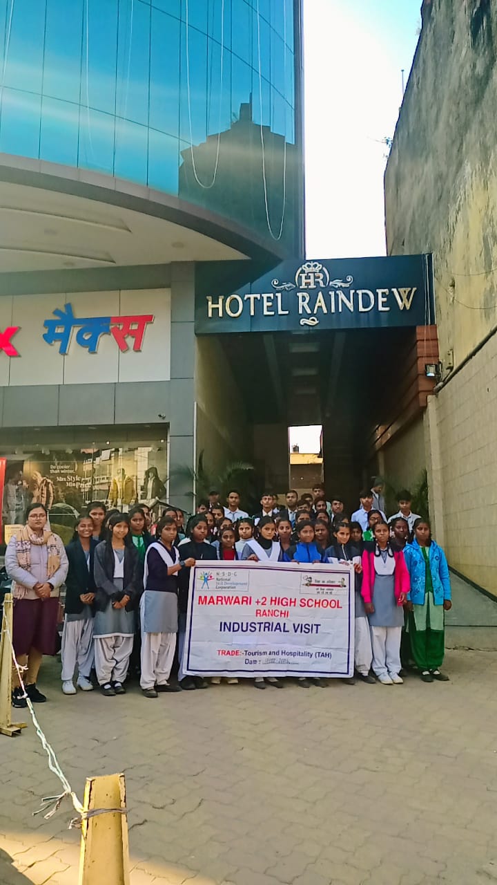 टीम एबीएन, रांची। कौशल विकास योजना के तहत झारखंड शिक्षा परियोजना के निदेशानुसार विभिन्न स्कूलों में चल रहे वोकेशनल एडुकेशन के अंतर्गत मारवाड़ी +2 उच्च विद्यालय, रांची के 9th से 12th तक के छात्र-छात्राओं को दिनांक 13–12–2023 को औद्योगिक भ्रमण पर लालपुर स्थित होटल रैनड्यू का भ्रमण कराया गया। जिसमें उनकी प्रशिक्षक, अंबरीन ताबा भी शामिल थी।
