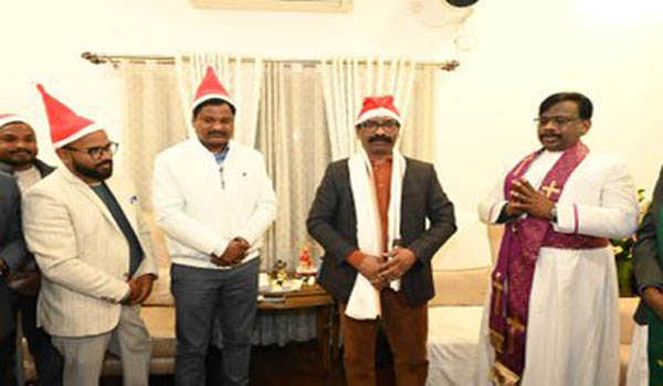 टीम एबीएन, रांची। मुख्यमंत्री हेमन्त सोरेन से कांके रोड रांची स्थित मुख्यमंत्री आवासीय कार्यालय में झारखंड क्रिश्चियन यूथ एसोसिएशन के प्रतिनिधिमंडल एवं जीईएल चर्च के बिशप सीमन तिर्की ने मुलाकात कर क्रिसमस पर्व की हार्दिक बधाई एवं शुभकामनाएं दीं। मौके पर मुख्यमंत्री श्री सोरेन ने भी सभी को क्रिसमस पर्व की हार्दिक बधाई एवं शुभकामनाएं दीं।