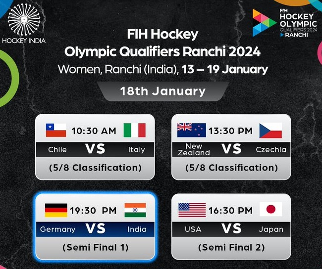 वहीं दिन का तीसरा मैच शाम साढ़े चार बजे से अमेरिका और जापान के बीच खेला जायेगा। उसके बाद दिन का अंतिम मैच भारत और जर्मनी के बीच खेला जायेगा। यह मैच देर शाम 7 बज कर 30 मिनट से शुरू होगा। टूर्नामेंट में अब तक दोनों ही टीम ने दो-दो मैच जीते हैं।