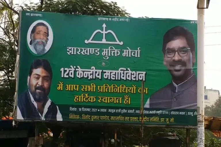 रांची। सत्तारूढ़ झारखंड मुक्ति मोर्चा का 12 वां महाधिवेशन 18 दिसम्बर को रांची के हरमू सोहराय भवन में होगा। इस एक दिवसीय महाधिवेशन में झारखंड मुक्ति मोर्चा के केंद्रीय समिति के सदस्यों का चुनाव भी होगा। इसके साथ ही केंद्रीय अध्यक्ष, कार्यकारी अध्यक्ष, महासचिव, उपाध्यक्ष, कोषाध्यक्ष और अन्य पदाधिकारियों का चुनाव होगा।पार्टी के 12 वें महाधिवेशन की तैयारियों में जुटे केंद्रीय महासचिव विनोद पांडेय ने बताया कि पार्टी के लिए यह महाधिवेशन बहुत महत्वपूर्ण है। इसमें झारखंड के साथ बिहार, ओडिशा, पश्चिमी बंगाल और असम से भी पार्टी के प्रतिनिधि शिरकत करेंगे। हर तीन साल पर झारखंड मुक्ति मोर्चा का महाधिवेशन होता है। जेएमएम का 10वां महाधिवेशन जमशेदपुर में आयोजित किया गया था। इसमें केंद्रीय अध्यक्ष शिबू सोरेन के स्वास्थ्य और उम्र को देखते हुए सर्वसम्मति से हेमन्त सोरेन को कार्यकारी अध्यक्ष बनाया गया था। 11 वां महाधिवेशन धनबाद के मैथन में 2018 में आयोजित किया गया था। झामुमो के दिवंगत नेताओं के नाम पर होगा कार्यक्रम स्थल हर तीन साल पर होने वाले झारखंड मुक्ति मोर्चा महाधिवेशन में कार्यक्रम स्थल का नाम झामुमो के दिग्गज नेताओं के नाम पर होगा। इसके जरिये पार्टी जेएमएम नेताओं को स्मरण करेगी। बता दें कि 11वें महाधिवेशन के बाद पार्टी ने अपने कई दिग्गज नेताओं को खो दिया है। ऐसे में इस बार 12वें महाधिवेशन के आयोजन स्थल सोहराय भवन को मरहूम हाजी हुसैन अंसारी, स्व साइमन मरांडी स्मृति प्रांगण का नाम दिया जा रहा है। झामुमो केंद्रीय महासचिव विनोद पांडेय ने बताया कि झामुमो केंद्रीय समिति में अधिकतम 451 सदस्य हो सकते हैं परंतु वर्तमान में इनकी संख्या करीब 400 है। 18 दिसंबर को होने वाला झारखंड मुक्ति मोर्चा का 12वां महाधिवेशन दो सत्रों में संचालित होगा। पहले सत्र में जहां अध्यक्ष आदि पदाधिकारियों का चुनाव होगा। वहीं दूसरे सत्र में राजनीतिक प्रस्ताव, पार्टी के आगामी कार्यक्रम, संगठन विस्तार पर चर्चा होगी।