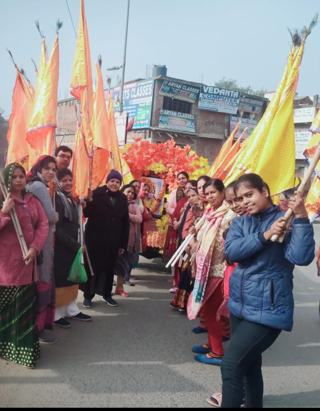 इसके बाद सुसज्जित वाहन में बाबा श्याम का दरबार सजाया गया।जिसमें महिला और पुरूष निशान लेकर शहर के विभिन्न इलाकों का भ्रमण करते हुए पानी टंकी रोड स्थित श्याम मंदिर पहुचकर सम्पन्न हुई। रास्ते मे निशान यात्रियों ने कभी राम बन कर कभी श्याम बन कर चले आना प्रभु...राम नाम के हीरे मोती मैं बिखराउ गली गली ... जैसे भजन ने श्रद्धालु भक्त झूमते रहे।