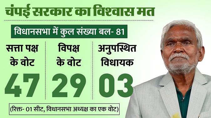 टीम एबीएन, रांची। झारखंड की सरकार ने सोमवार को विधानसभा में विश्वास मत हासिल कर लिया। चंपई सोरेन सरकार के पक्ष में 47 मत पड़े जबकि विपक्ष में 29 मत ही पड़े। तीन सदस्य अनुपस्थित रहे। इसके साथ ही राज्य में 31 जनवरी से चल रहे सियासी उठापटक का पटाक्षेप हो गया।