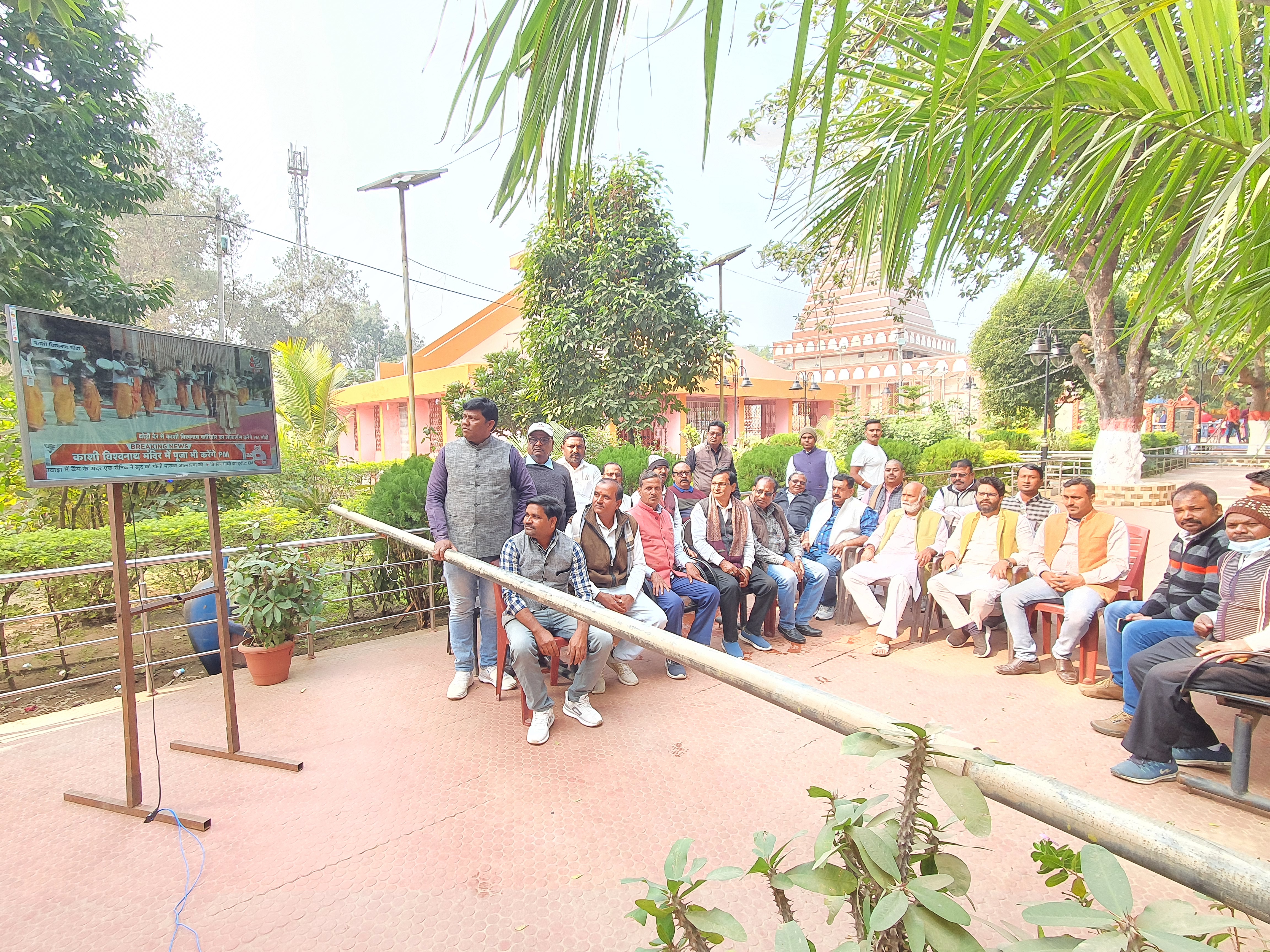 चतरा। प्रधानमंत्री नरेंद्र मोदी ने सोमवार को दिव्य काशी काॉरिडोर लोकार्पण किया। इस मौके पर जिले के सभी मंडलों के देवालय और धार्मिक स्थलों पर एलईडी स्क्रीन के जरिए भाजपाइयों ने कार्यक्रम का सीधा प्रसारण देखा। इटखोरी स्थित मां भद्रकाली मंदिर में एलईडी स्क्रीन पर भाजपाइयों ने दिव्य काशी काॉरिडोर लोकार्पण का सीधा प्रसारण देखा। भाजपा जिला मंत्री सतीश सिंह ने बताया कि प्रधानमंत्री के कार्यक्रम का जिले के सभी मंडलों में एलईडी स्क्रीन के जरिए सीधा प्रसारण किया गया है। ताकि देश के लोग काशी विश्वनाथ के नए स्वरूप यानी दिव्य काशी का दर्शन कर सकें। उन्होंने बताया कि वाराणसी से सांसद बनने के बाद देश की सत्ता पर काबिज हुए प्रधानमंत्री ने काशी वासियों से जो वायदा किया था उसे अब दिव्य काशी के रूप में वहां की जनता को देने जा रहे हैं। जिससे न केवल वाराणसी बल्कि पूरे देश के सनातन धर्म को मानने वाले लोगों में खुशी का माहौल व्याप्त है। इस मौके पर भाजपा मंडल अध्यक्ष देव कुमार सिंह, मंडल प्रभारी सुरेश शर्मा, जिला महामंत्री मृत्यंजय सिंह, जिला मंत्री सतीश सिंह, रत्न शर्मा, सुरेन्द्र सिंह, विधायक प्रतिनिधि सुधीर राय, निरंजन सिंह, शिव कुमार राणा,भाजयुमो मंडल अध्यक्ष कमलेश सिंह समेत अन्य लोग मौजूद थे।