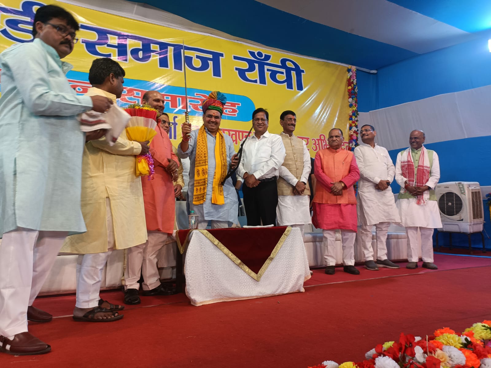 टीम एबीएन, रांची। संपूर्ण मारवाड़ी समाज द्वारा मारवाड़ी भवन हरमू रोड रांची मे सम्मान समारोह कार्यक्रम का आयोजन किया गया। इस सम्मान समारोह में राजस्थान के मुख्यमंत्री भजन लाल शर्मा को मारवाड़ी समाज के विभिन्न संस्थाओं रांची जिला मारवाड़ी सम्मेलन, अग्रवाल सभा, मारवाड़ी सहायक समिति, मारवाड़ी युवा मंच, अग्रवाल युवा सभा, श्री माहेश्वरी सभा, ब्राह्मण सभा, राजस्थानी प्रोफेशनल एसोसिएशन, दिगंबर जैन पंचायत, ओसवाल संघ, विजय वर्गीय सभा, खंडेलवाल वैश्य संघ, मारवाड़ी सैन समाज, हरियाणा संघ, मारवाड़ी महिला सम्मेलन रांची, मारवाड़ी महिला मंच समर्पण शाखा, विप्र फाउंडेशन, नागरमल मोदी सेवा सदन, झारखंड चैंबर ऑफ़ कॉमर्स, झारखंड थोक विक्रेता संघ, श्रीमहावीर मंडल, श्री श्याम मंडल, श्री श्याम मित्र मंडल, श्री हनुमान मंडल, राणी सती मंदिर कमेटी, श्री राणी सती मंडल , रांची सेवा समिति, गौ सेवा समिति, झारखंड प्रादेशिक अग्रवाल सम्मेलन, झारखंड प्रांतीय मारवाड़ी सम्मेलन, झारखंड प्रादेशिक वैश्य महासम्मेलन, रांची गौशाला न्यास, पंजाबी हिंदू बिरादरी, गुरु नानक अस्पताल, झारखंड प्रादेशिक अग्रसेन हितकारी सभा, के अलावा अन्य संस्थाओं के पदाधिकारीयों ने पुष्प गुच्छ देकर, अंग वस्त्र एवं राजस्थानी साफा पहनाकर एवं स्मृति चिन्ह देकर सम्मानित करते हुए भव्य स्वागत एवं अभिनंदन किया गया।