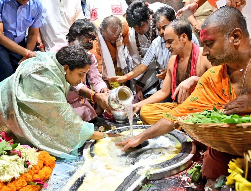 महिलाओं ने झारखंड सरकार द्वारा महिलाओं के लिए लागू की गयी योजना के लिए आभार प्रकट किया। सीएम हेमंत सोरेन व कल्पना सोरेन सबसे पहले देवघर के बाबा मंदिर गये और पूजा-अर्चना की। इसके बाद पार्वती मंदिर गये और इसके बाद वे बगला मंदिर गये। वहां दोनों ने विधिवत पूजा-अर्चना की।