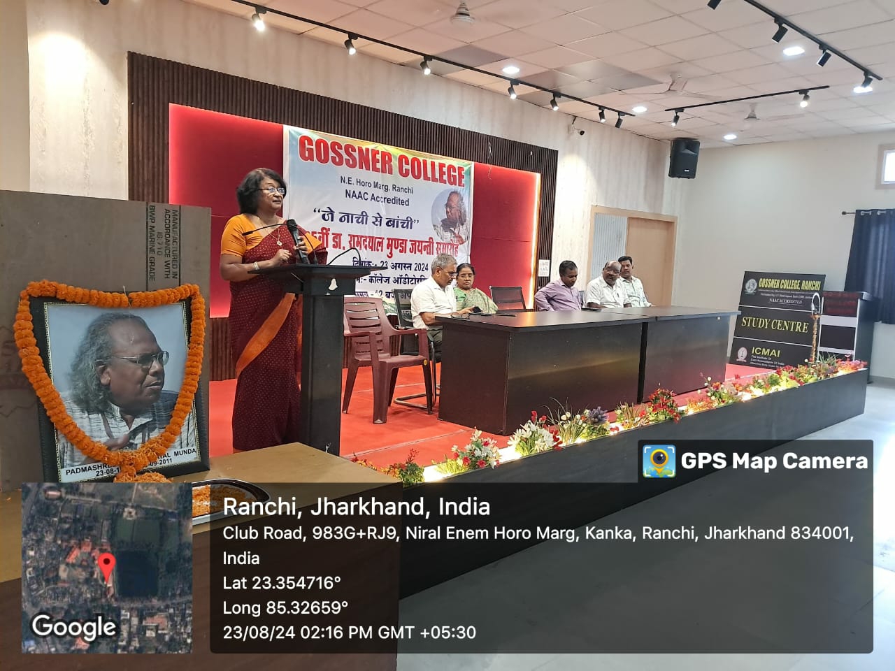 टीम एबीएन, रांची। आज दिनांक 23 अगस्त 2024 दिन शुक्रवार को गोस्सनर कॉलेज, रांची में पद्मश्री डॉक्टर रामदयाल मुंडा की जयंती धूमधाम के साथ मनायी गयी। कार्यक्रम की शुरुआत उनकी तस्वीर पर माल्यार्पण कर और दीप प्रज्वलन के साथ की गयी।