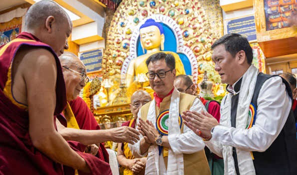 रिजिजू ने सोशल मीडिया साइट एक्स पर शनिवार को एक पोस्ट में कहा कि हिमाचल प्रदेश के धर्मशाला के मैकलियोड गंज स्थित मुख्य मंदिर (त्सुकग्लागखांग) में परम पावन चौदहवें दलाई लामा के दीर्घायु प्रार्थना समारोह में शामिल हुआ। इस पवित्र अवसर पर उनका आशीर्वाद पाकर अभिभूत हूं।