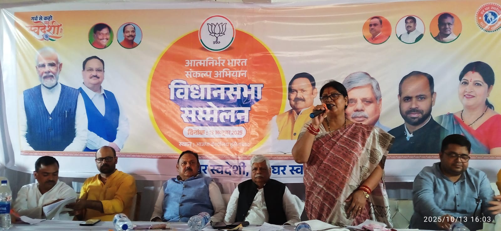 एबीएन न्यूज नेटवर्क, हुसैनाबाद,पलामू। भारतीय जनता पार्टी के तत्वावधान में सोमवार को शहर के विश्वकर्मा भवन सह भाजपा कार्यालय में आत्मनिर्भर भारत संकल्प अभियान के तहत विधानसभा सम्मेलन का आयोजन किया गया।