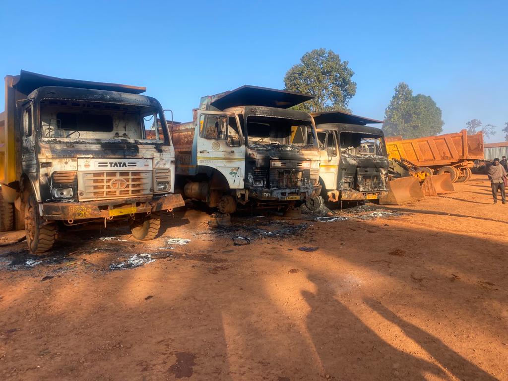 गुमला। बिशुनपुर प्रखंड के गुरदरी थाना क्षेत्र के कुजाम पाठ में एनकेसीपीएल कंपनी के बॉक्साइड माइंस क्षेत्र में भाकपा माओवादियों ने बड़ी वारदात को अंजाम देते हुए शुक्रवार की वहां खडे 27 वाहनों को आगे के हवाले कर दिया। वहीं कई मजदूरों व चालकों के साथ मारपीट की। वहीं दहशत फैलाने के उद्देश्य से फायरिंग भी की है। भाकपा माओवादी संगठन ने पर्चा छोड़कर घटना की जिम्मेवारी ली है। इस घटना में लगभग 11 करोड रूपये के वाहन माओवादी संगठन ने फूंक दिया। घटना के संबंध में माइंस के सुपरवाइजर रामप्रवेश सिंह ने बताया कि शुक्रवार की रात लगभग 25 से 30 की संख्या में भाकपा माओवादी के संगठन के वर्दी धारी नक्सली हथ्यिार के साथ वहां पहुंच थे। नक्सली कैंप में प्रवेश करने के साथ है सभी माइंस कर्मी को बंधक बनाकर मोबाइल छीन लिया गया और सामने रखें लगभग 3 ड्रम डीजल को निकाल कर बाल्टी से सभी वाहनों पर डाला। जिसके बाद एक-एक कर सभी वाहन को आग के हवाले कर दिया गया। जिससे सभी वाहन जलने लगे। जब नक्सली जाने लगे तो माइंस कर्मियों के द्वारा आग बुझाने का प्रयास किया गया। जिससे नक्सली बौखला उठे और पुन: लौटकर सुपरवाइजर रामप्रवेश सिंह, मुन्ना पाठक, अमृत मिश्रा एवं ड्रिल आॅपरेटर साहेब लाल के साथ मारपीट की और आग नहीं बुझाने की चेतावनी देते हुए सभी लोगों का मोबाइल वापस कर दिया गया। इधर घटना में दो पोकलेन 4 जेसीबी 17 हाईवा, दो पिकअप एवं दो पानी टैंकर जलकर क्षतिग्रस्त हो गया है। घटना को अंजाम देने के बाद नक्सली असानी से वहां से निकल गये और क्षेत्र में संचालित सभी बाक्साईट मांइस को बंद करने की चेतावनी दी। घटना की सूचना के बाद शनिवार को मौके पर हिंडालको के कर्मी उत्तम गांगुली पहुंच कर घटना की जानकारी ली। इस दौरान उन्होंने बताया कि आगजनी की घटना से लगभग 12 करोड़ के नुकसान हुआ है। वहीं उन्होंने यह भी कहा कि आगे हिंडालको के प्रबंधक के पहुंचने के बाद आगे की प्रक्रिया की जाएगी। इधर घटना की सूचना के बाद मौके पर पहुंची पुलिस जांच में जुट गई है। घटना के बाद सभी मजदूर व कर्मी डरे सहमें है। इस घटना में भाकपा माओवादी के कमांडर लजीम अंसारी व रन्थु उरांव के दस्ते के होने की आशंका जाहिर की जा रही है।