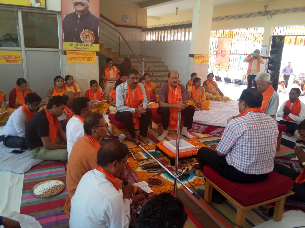 टीम एबीएन, रांची। एसआर डीएवी पब्लिक स्कूल पुंदाग के प्रांगण में वैदिक हवन सह चेतना शिविर आयोजित की गई, जिसमें झारखंड प्रक्षेत्र एफ के लगभग 150 शिक्षक - शिक्षिकाओं ने भाग लिया। डीएवी सीएमसी नई दिल्ली के प्रधान पद्मभूषण से सम्मानित आर्य रत्न पूनम सूरी की प्रेरणा से इस सामूहिक हवन का आयोजन किया गया, जिसके मुख्य यजमान आर्य समाज के प्रतिनिधि एसएल गुप्ता तथा मुख्य पुरोहित संस्कृत शिक्षक रहें। हवन और यज्ञ प्रार्थना के उपरांत प्राचार्य संजय कुमार मिश्रा ने विभिन्न डीएवी विद्यालयों से पधारे प्राचार्य और शिक्षकगण का औपचारिक स्वागत किया। उन्होंने डीएवी प्रबंधन समिति के प्रधान आर्य रत्न पद्मश्री डॉ पूनम सूरी तथा डीएवी पब्लिक स्कूल्स - 1 के निदेशक डॉ जेपी शूर के प्रति आभार व्यक्त करते हुए कहा कि कोरोना महामारी के कारण आर्य समाज की गतिविधियां कुछ रुक सी गईं थीं। डीएवी संस्था की सक्रिय भागीदारी से उसे नई ऊर्जा मिल सकती हैं। हमारी सक्रिय भागीदारी केवल मात्र अध्यापक समाज तक ही सीमित नहीं रहेंगी, बल्कि हम अपनी संस्कृति के उज्ज्वल पक्ष से विद्यार्थियों को भी परिचित करवाएंगे एवं इस प्रकार की गतिविधियों का आयोजन करेंगे जिनसे विद्यार्थियों का चारित्रिक विकास हो। डीएवी झारखंड जोन एफ के सहायक क्षेत्रीय पदाधिकारी एमके सिन्हा ने भी सभा को संबोधित करते हुए कहा कि डीएवी विद्यालयों में सामूहिक हवन के आयोजन की प्रथा पुरानी है। कोराेना के कारण विद्यालय बंद हो जाने के कारण इस गतिविधि में रुकावट आ गई थी, जो कि एक बार फिर डीएवी प्रबंधन समिति, नई दिल्ली की प्रेरणा से रफ्तार पकड़ रही है। हम सब को डीएवी का सिपाही बन कर अपनी संस्कृति की उन्नति में भागीदारी निभानी है। विद्यालय के प्रबंधक वीके पांडे ने हवन के वैज्ञानिक महत्व को प्रतिपादित करते हुए कहा कि हवन से वातावरण की शुद्धि होती है एवं वातावरण संक्रमण मुक्त होता है अतः नियमित रूप से हवन शुभ फल प्रदान करता है। आर्य समाज, झारखंड के प्रतिनिधि गुप्ता जी ने अपने आशीर्वचनों में कहा कि हवन सभी को बल, विद्या, बुद्धि प्रदान करने वाला साबित हो। तत्पश्चात विद्यालय की संगीत मंडली ने सुखी बसे संसार सब तथा अब सौंप दिया इस जीवन का भजन प्रस्तुत कर सबको मंत्र मुग्ध कर दिया। विद्यालय के नन्हें - मुन्ने विद्यार्थियों ने महर्षि दयानंद जीवन के अंतिम दिनों की झलकियां एक लघु नाटिका के रूप में प्रस्तुत करके दर्शकों की खूब वाहवाही बटोरी। कार्यक्रम का समापन शांति पाठ तथा वैदिक जयघोष के साथ हुआ। मौके पर झारखंड जोन बी के सहायक क्षेत्रीय पदाधिकारी मनोज कुमार सिन्हा जी ने भी उपस्थित होकर हवन में भाग लिया।