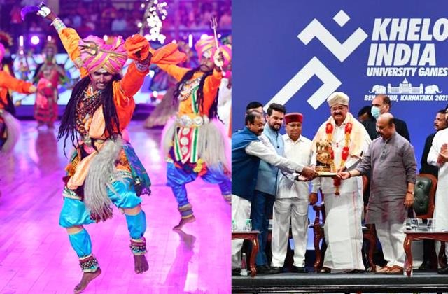 एबीएन सेंट्रल डेस्क। उपराष्ट्रपति एम वेंकैया नायडू ने रविवार को खेलो इंडिया यूनिवर्सिटी गेम्स 2021 का उद्घाटन किया। इससे पहले श्री कांतीरवा इंडोर स्टेडियम में शानदार उद्घाटन समारोह में साउंड एंड लाइट शो ने सबको मंत्रमुग्ध किया। समारोह में कर्नाटक की समृद्ध सांस्कृतिक विरासत, मल्लखंब, योगासन का भी प्रदर्शन किया गया। स्टेडियम में 2500 दर्शक उपस्थित थे जिनके सामने गायक चंदन शेट्टी ने खेलो इंडिया यूनिवर्सिटी गेम्स का एंथम सॉन्ग गाया। 10 दिवसीय खेल आयोजन में पहली बार मल्लखंब को भी जोड़ा गया है। केआईयूजी 2021 में मेजबान जैन विश्वविद्यालय का प्रतिनिधित्व करते हुए भारतीय तैराक श्रीहरि नटराज ने नायडू द्वारा खेलों के उद्घाटन की घोषणा के बाद सभी एथलीटों की ओर से शपथ ली। विमल कुमार, अंजू बॉबी जॉर्ज, रीथ अब्राहम, अश्विनी नचप्पा, मलाथी होला, बीआर बीडू, एबी सुब्बैया, एसवी सुनील, वीआर रघुनाथ जैसे खेल के दिग्गज भी उद्घाटन समारोह का हिस्सा थे। गेम्स में करीब 4000 प्रतिभागी हिस्सा लेंगे। पराष्ट्रपति एम वेंकैया नायडू खेलों के उद्घाटन पर कहा- ग्रामीण स्तर पर खेल गतिविधियों को प्रोत्साहित करने की जरूरत है। उपराष्ट्रपति ने कॉलेजों में दाखिले और विभिन्न विभागों में प्रोन्नति में खिलाड़ियों को अतिरिक्त अंक देने का भी आह्वान किया। उन्होंने खेलों में पहली बार शुरू किए गए योगासन और मल्लखंब पर कहा कि यह हमारे ग्रामीण और स्वदेशी खेलों को संरक्षित और बढ़ावा देने के लिए बहुत महत्वपूर्ण है जो परंपरा के साथ हमारी सांस्कृतिक विरासत का हिस्सा हैं? प्रधानमंत्री ने गेम्स के शुभारंभ पर कहा कि बेंगलुरु देश के युवा उत्साह का प्रतीक है और पेशेवरों का गौरव है। यह महत्वपूर्ण है कि यहां स्टार्टअप और खेल का संगम हो रहा है। बेंगलुरू में खेलो इंडिया यूनिवर्सिटी गेम्स के आयोजन से इस खूबसूरत शहर की ऊर्जा में इजाफा होगा। प्रधानमंत्री ने टीम भावना के महत्व को रेखांकित किया। उन्होंने कहा- यह टीम भावना हमें खेलों से सीखने को मिलती है। आप इसे सीधे खेलो इंडिया यूनिवर्सिटी गेम्स में अनुभव करेंगे। यह टीम भावना हमें जीवन को देखने का एक नया तरीका भी देती है। इसी तरह, खेलों में सफलता के लिए एक समग्र दृष्टिकोण और शत-प्रतिशत समर्पण प्रमुख आवश्यकताएं हैं। खेल के मैदान से मिली ताकत और सीख भी जीवन में आगे ले जाती है। खेल वास्तविक अर्थों में, जीवन की वास्तविक समर्थन प्रणाली है। द्रीय खेल मंत्री अनुराग सिंह ठाकुर ने कहा कि लगभग 200 विश्वविद्यालयों के करीब 4000 प्रतिभागी इन गेम्स में हिस्सा लेंगे। उन्होंने कहा- मैंने जैन विश्वविद्यालय का दौरा किया और 500 से अधिक उत्साही एथलीटों से मिला। मुझे यह देखकर बहुत खुशी हुई कि यहां खेलों के लि