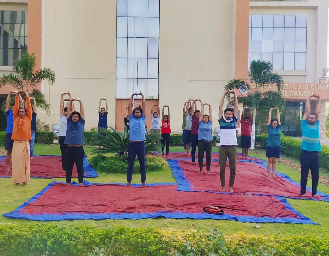 टीम एबीएन, रांची। मंगलवार से नेशनल लॉ यूनिवर्सिटी में नियमित रूप से योग की कक्षा शुरू हो गई। हाइकोर्ट के जस्टिस अपरेस कुमार सिंह ने एनएलयू के कुलपति केशवा राव को लॉ में अध्ययनरत छात्रों के लिये योग कराने की सलाह दी थी और इसकी ऑफिसियल शुरुआत भी 23 अप्रैल को आचार्य मुक्तरथ की उपस्थिति हो गयी थी। आज विधिवत योग कक्षा की शुरुआत हो गयी। स्वामी मुक्तरथ और गौरव कुमार ने योग के सैद्धांतिक और प्रायोगिक कक्षा का परिचालन किया। समग्र स्वास्थ्य के लिए बिहार योग पद्धति का अभ्यास कराया गया। जिसमें अष्टांग योग, हठयोग, कुंडलिनी योग, भक्तियोग तथा ज्ञानयोग की साधना को विशेष रुप से बताया गया। मुक्तरथ जी ने कहा जिस प्रकार से हिंदुस्तान में मधुमेह और हृदय रोग के साथ-साथ कई प्रकार की मानसिक समस्याएं बढ़ रही हैं, यह चिंता का विषय है और इसे आसन, प्राणायाम, षट्कर्म, ध्यान, कीर्तन जैसे समग्र योग की साधना से रोका जा सकता है। एनएलयू के वीसी केशवा राव ने सभी लॉ स्टूडेंट्स को योग करने की सलाह दी और उन्होंने कहा, योग आप के शरीर को स्वस्थ रखने के साथ पढ़ाई में बहुत मदद करेगा। प्राणायाम और ध्यान मस्तिष्क को तनावमुक्त रखता है।