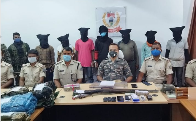 लातेहार। लातेहार पुलिस ने एक बड़ी कार्रवाई करते हुए टीपीसी के एरिया कमांडर रमेश गंझू उर्फ़ बोड़ा जी सहित 7 उग्रवादियों को गिरफ्तार करने में सफलता प्राप्त की है। लातेहार एसपी प्रशांत आनंद को मिली गुप्त सूचना पर एएसपी अभियान विपुल शुक्ला के नेतृत्व में गठित छापामारी दल ने यह सफलता हासिल की है। पुलिस को सूचना मिली थी कि बालूमाथ थाना के शेरगढ़ा के पास टीपीसी के उग्रवादी किसी व्यवसाई से लेवी की राशि वसूलने पहुंचने वाले हैं। छापेमारी दल ने सबसे पहले टीपीसी के तीन उग्रवादियों को एक लोडेड देशी रिवाल्वर और तीन सेट वर्दी के साथ पकड़ा। फिर उनकी निशानदेही पर शेरगड़ा के झरी साव को लेवी के 20 हज़ार रुपये के साथ गिरफ्तार किया गया। एएसपी विपुल पांडेय ने बताया कि झरी के बताये अनुसार कार्रवाई कर बालूमाथ के बकरु टोला भेलवाही से टीपीसी के एरिया कमांडर रमेश गंझू उर्फ़ बोड़ा जी को एक सेमी आटोमेटिक राइफल, 136 जिन्दा गोली और लेवी के रुपयों के साथ पकड़ा गया। इसी क्रम में तीन अन्य उग्रवादी भी पकड़े गये। उनके पास से 1 लाख 47 रुपये नकद, कपड़ा और सामग्री बरामद की गयी। मौके पर से चार अन्य उग्रवादी भागने में सफल रहे। एएसपी ने बताया कि एरिया कमांडर पर एक लाख रुपये का इनाम घोषित है तथा उसके विरुद्ध ज़िले के बालूमाथ, चंदवा और हेरहंज, चतरा के टंडवा व अन्य सीमावर्ती थानों में एक दर्जन से ज्यादा रंगदारी, आगजनी और हत्या के मामले दर्ज हैं।