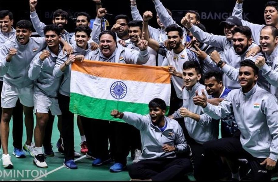 एबीएन सेंट्रल डेस्क। भारत ने खिताबी मुकाबले में शानदार प्रदर्शन करते हुए इंडोनेशिया को रविवार को 3-0 से हराकर प्रतिष्ठित पुरुष बैडमिंटन टीम प्रतियोगिता थॉमस कप को पहली बार जीत लिया। प्रधानमंत्री नरेंद्र मोदी ने इस शानदार जीत के लिए भारतीय बैडमिंटन टीम को बधाई दी। पीएम मोदी ने ट्वीट किया भारतीय बैडमिंटन टीम ने रचा इतिहास! भारत के थॉमस कप जीतने से पूरा देश उत्साहित है! हमारी कुशल टीम को बधाई और उनके भविष्य के प्रयासों के लिए शुभकामनाएं। यह जीत कई आगामी खिलाड़ियों को प्रेरित करेगी। भारत ने पहले तीनों मैच जीतकर थॉमस कप पर कब्जा जमाया। लक्ष्य सेन और किदाम्बी श्रीकांत ने एकल मैच तथा सात्विकसैराज रन्किरेड्डी और चिराग शेट्टी ने युगल मैच जीता। भारत ने शुक्रवार को इतिहास रचते हुए डेनमार्क को 3-2 से हराकर थॉमस कप के फाइनल में पहली बार जगह बनाई थी। भारतीय टीम इससे पहले 1952, 1955 और 1979 में सेमीफाइनल में पहुंची थी। लक्ष्य सेन ने एंथनी गिनटिंग को 8-21, 21-17, 21-16 से हराकर भारत की अच्छी शुरुआत की दिलाई। भारत ने पहली बार थॉमस कप जीतने के लिए 14 बार के चैंपियन इंडोनेशिया को हरा दिया है। रोमांचक मुकाबले में लक्ष्य सेन ने एंथनी गिनटिंग को 8-21, 21-17, 21-16 से हराकर भारत की अच्छी शुरुआत की। भारत की युगल जोड़ी सात्विक और चिराग ने अहसान-सुकामुल्जो को हराया। भारत का नाम इतिहास के पन्नों में दर्ज करा दिया। भारतीय टीम का यह शानदार प्रदर्शन रहा, जिसने पांच बार की चैम्पियन मलेशिया को 3-2 से हराकर सेमीफाइनल में जगह बनाकर 43 साल के इंतजार को खत्म किया था। किदांबी श्रीकांत ने जोनाथन क्रिस्टी को हराया।