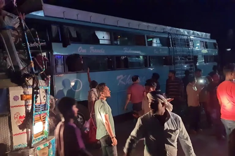 टीम एबीएन, रांची। दुमका से कोलकाता जा रही ओम ट्रैवल्स की एक बस रविवार रात विपरीत दिशा से आ रहे ट्रक से टकरा गई। बस-ट्रक की सीधी टक्कर में बस सवार छह से अधिक सवारियां जख्मी हो गईं। हादसे के बाद लोग खौफजदां हो गए। घटना स्थल पर चीखपुकार मच गई। बाद में घायलों को फूलो झानो मेडिकल कॉलेज अस्पताल में भर्ती कराया गया। स्थानीय लोगों के मुताबिक घटना मुफस्सिल थाना के कुसुमडीह गांव के पास की है। इस ओर से ओम ट्रैवल्स की बस कोलकाता जा रही थी। इसी दौरान दूसरी ओर से ट्रक आ गया। लोग कुछ समझ पाते, इससे पहले बस ट्रक से टकरा गई। बस-ट्रक की आमने-सामने की टक्कर में बस क्षतिग्रस्त हो गई। बस में सवार कई लोग जख्मी हो गए। आनन-फानन में घायलों को फूलो झानो मेडिकल कॉलेज अस्पताल में लाया गया। यहां घायलों का इलाज चल रहा है। हालांकि घटना की वजह का पता नहीं चल सका है। लेकिन हादसे से बस सवारियों में खौफ है।