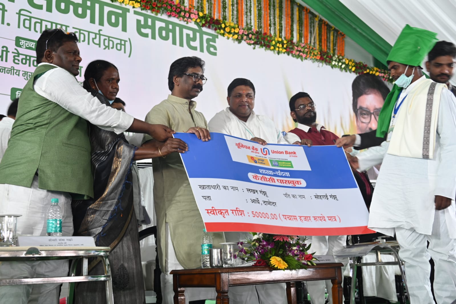 टीम एबीएन, लातेहार (पलामू)। लातेहार जिले के खेल स्टेडियम में आयोजित बिरसा किसान सम्मान समारोह में मुख्यमंत्री हेमंत सोरेन ने किसानों के बीच केसीसी का वितरण कर उन्हें लाभान्वित किया। पलामू प्रमंडल के 52043 किसानों को केसीसी का लाभ दिया गया। इनके बीच 334.94 करोड़ केसीसी ऋण का वितरण किया गया। इसमें पलामू जिले के 18,500 किसानों के बीच 100 करोड़ ऋण का वितरण किया गया। वहीं लातेहार जिले के 23,204 किसानों के बीच 150.12 करोड़ ऋण का वितरण किया गया। वहीं गढ़वा जिले के 10,339 किसानों के बीच 87.81 करोड़ केसीसी ऋण वितरण किया गया। कार्यक्रम स्थल पर मुख्यमंत्री ने प्रमंडल क्षेत्र के तीनों जिले पलामू, लातेहार एवं गढ़वा के 10-10 किसानों को सांकेतिक रूप से केसीसी ऋण का वितरण किया। कार्यक्रम को सरकार के माननीय मंत्रियों एवं गणमान्य व्यक्तियों ने भी संबोधित किया। लातेहार उपायुक्त अबु इमरान ने सभी का स्वागत किया। उनके ने जनकारी दी कि मुख्यमंत्री के द्वारा किसानों को बिरसा किसान सम्मान के तहत किसान क्रेडिट कार्ड (KCC) से अच्छादित कर उनके कृषि कार्यों में सहयोग करने हेतु इस समारोह का आयोजन किया गया है। निश्चित रूप से किसानों को मिल रहे यह केसीसी वरदान साबित होगा और किसान भाई कृषि कार्य सुगमतापूर्वक कर आत्मनिर्भर बनेंगे। प्रमण्डल स्तरीय बिरसा किसान सम्मान समारोह में किसान क्रेडिट कार्ड वितरण कार्यक्रम के तहत पलामू प्रमण्डल के लातेहार जिला से कुल 23204 बिरसा किसानों को 150.124 करोड़ रूपये केसीसी की स्वीकृति प्रदान की गयी है। पलामू जिला में 18500 बिरसा किसानों को 100 करोड़ रूपये की केसीसी की स्वीकृति प्रदान की गयी है। गढ़वा जिला में अबतक कुल 10339 बिरसा किसानों को 87.81 करोड़ रूपये ऋण की स्वीकृति दी गयी है। पलामू प्रमण्डल में अबतक कुल 52043 बिरसा किसानों को 337.94 करोड़ रूपये का केसीसी की स्वीकृति प्रदान की गई है। झारखण्ड सरकार की यह मंशा है कि झारखण्ड के सभी किसानों को बिरसा किसान सम्मान के तहत किसान क्रेडिट कार्ड वितरण किया जाए और झारखण्ड सरकार के इस महत्वपूर्ण उद्देश्य को साकार करने के लिए पलामू प्रमण्डल भी कदम से कदम मिलाते हुए लक्ष्य को प्राप्त करने के लिए हर संभव प्रयास कर रहा है। उन्होंने मुख्यमंत्री को विश्वास दिलाया कि छुटे हुए बिरसा किसानों को भी आनेवाले दिनों में जल्द से जल्द किसान क्रेडिट कार्ड से अच्छादित किया जाएगा। मुख्य समारोह के पूर्व लातेहार में पहुंचने के बाद मुख्यमंत्री को लातेहार उपायुक्त आबू इमरान सहित अन्य अधिकारियों ने गुलदस्ता भेंट कर स्वागत किया। वहीं मुख्यमंत्री को गार्ड ऑफ ऑनर किया गया। प्रमंडल स्तरीय कार्यक्रम में मुख्यमंत्री हेमंत सोरेन के अलावा महिला बाल विकास एवं सामाजिक सुरक्षा मंत्री जोबा मांझी, कृष