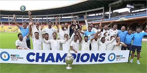 एबीएन स्पोर्ट्स डेस्क। मध्य प्रदेश ने घरेलू क्रिकेट टूर्नामेंट रणजी ट्रॉफी को अपने नाम कर लिया है। बेंगलुरु में खेले गए फाइनल मुकाबले में मध्य प्रदेश ने 41 बार की चैंपियन मुंबई को 6 विकेट से हराकर पहली बार खिताब अपना नाम किया है। जीत के साथ ही खत्म हुआ 88 साल का सूखा : आखिरी दिन मुंबई ने एमपी के सामने जीत के लिए 108 रनों का लक्ष्य रखा था। जिसे टीम ने 29.5 ओवर में ही हासिल कर लिया। मध्य प्रदेश की इस जीत के हीरो यश दुबे, शुभम शर्मा और रजत पाटीदार रहे हैं। जिन्होंने पहली पारी में शतक जड़कर टीम को बढ़त दिलाई थी। खिताब जीतकर एमपी ने 88 साल का सूखा खत्म किया है। एमपी ने 108 रनों के आसान से लक्ष्य का पीछा 30वें ओवर की एक गेंद रहते ही कर लिया। हिमांशु ने इस दौरान 37 तो शुभम और पाटीदार ने 30-30 रन की पारी खेली। पाटीदार ने विनिंग शॉट लगाकर मध्य प्रदेश को रणजी ट्रॉफी का नया बादशाह दिला दिया।