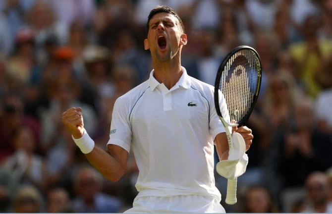 एबीएन स्पोर्ट्स डेस्क। नोवाक जोकोविच विंबलडन के फाइनल में पहुंच गए हैं। उन्होंने सेमीफाइनल मुकाबले में दुनिया के नंबर 9 खिलाड़ी कैम नोरी को 2-6 6-3 6-2 6-4 से मात दी। पहला सेट गंवा चुके जोकोविच ने बाद के तीन लगातार सेट जीतकर फाइनल में अपनी जगह पक्की कर ली जहां उनका मुकाबला निक किर्गियोस से होगा। निक किर्गियोस को बिना सेमीफाइनल मुकाबला खेले ही फाइनल का टिकट मिल गया है क्योंकि दिग्गज राफेल नडाल को चोट के चलते प्रतियोगिता से बाहर होना पड़ा था। वरना नडाल भी सेमीफाइनल में पहुंच चुके थे। जोकोविच का 8वां विंबलडन फाइनल होगा। इसके साथ ही यह खिलाड़ी रिकॉर्ड 32वीं बार ग्रेंड स्लैम फाइनल में पहुंच चुका है और रोजर फेडरर के 31 बार पहुंचने के रिकॉर्ड को ध्वस्त कर चुका है। जोकोविच ने पहला सेट 2-6 से हारने के बाद दूसरे सेट में शानदार वापसी की। उन्होंने पहला गेम जीतने के बाद हालांकि दूसरे गेम गंवा दिया उनको विपक्षी से आगे भी कड़ी टक्कर मिलती रही। लेकिन नोरी 3 गेम जीतकर वापसी नहीं कर पाए और जोकोविच ने सेट को 6-3 से जीत लिया। तीसरे सेट में जोकोविच पूरी लय में आ चुके थे और उन्होंने इसको 6-2 से जीत लिया। चौथे सेट के शुरुआत दो गेम जोकोविच ने जीते, नोरी ने तीसरे गेम में वापसी की पर चौथा गेम फिर से जोकोविच के पाले में गया। नोरी इतनी आसानी से हार मानने वाले नहीं थे और उन्होंने चौथे सेट का तीसरा गेम अपने पाले में करके स्कोर को 4-3 कर दिया। इसके बाद दोनों खिलाड़ियों ने 1-1 गेम जीता। पर जोकोविच ने नोरी को अगले सेट में जाने का कोई मौका नहीं दिया व एक और विंबलडन फाइनल में प्रवेश कर लिया जहां वे नडाल की गैरमौजूदगी में खिताब के प्रबल दावेदार के तौर पर उतरेंगे।