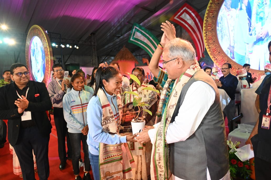 टीम एबीएन, रांची। राजधानी के मोरहाबादी में दो दिवसीय जनजातीय महोत्सव का समापन हुआ। समापन समारोह के दौरान कॉमनवेल्थ गेम्स 2022 में भारतीय महिला हॉकी टीम की सदस्य रही झारखंड की खिलाड़ियों को सम्मानित किया गया। सम्मान पाकर सभी खिलाड़ी काफी खुश हुईं। कॉमनवेल्थ गेम्स 2022 में कांस्य पदक जीतने वाली भारतीय टीम में झारखंड की तीन खिलाड़ी थी। ये खिलाड़ी हैं निक्की प्रधान, सलीमा टेटे और संगीता कुमारी। जनजातीय महोत्सव के समापन समारोह के दौरान इन खिलाड़ियों को समारोह के मुख्य अतिथि छत्तीसगढ़ के सीएम भूपेश बघेल के हाथों सम्मानित किया गया। मुख्यमंत्री हेमंत सोरेन ने भी इन्हें प्रतीक चिन्ह और शॉल ओढ़ाकर सम्मानित किया और बेहतर प्रदर्शन के लिए बधाई दी। बता दें कि कॉमनवेल्थ गेम्स में कांस्य पदक जीतकर भारतीय महिला हॉकी टीम में शामिल झारखंड की निक्की प्रधान सलीमा टेटे और संगीता कुमारी बुधवार को झारखंड लौटीं। रांची एयरपोर्ट पर उनका भव्य स्वागत किया गया। इस पदक को हासिल करने के लिए महिला हॉकी टीम को 16 साल तक इंतजार करना पड़ा। इसकी खुशी उनके चेहरे पर देखते बन रही थी। भारतीय महिला हॉकी टीम ने न्यूजीलैंड को पेनाल्टी शूटआउट में 2-1 से पराजित किया था। कांस्य पदक के लिए हुए मुकाबले में झारखंड की सलीमा ने एकमात्र गोल किया था, लेकिन गोल बराबर होने पर मामला पेनाल्टी शूटआउट तक चला गया था। झारखंड हॉकी के अध्यक्ष भोला सिंह और महिला हॉकी टीम की कोच और कप्तान रही असुंता लकड़ा समेत संघ से जुड़े पदाधिकारियों ने उनका स्वागत किया। अपने विजयी खिलाड़ियों के साथ सेल्फी लेने की होड़ मची रही।