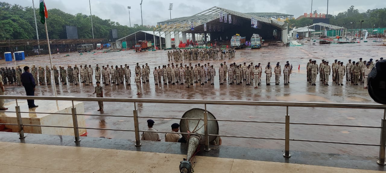 टीम एबीएन, रांची। रांची के मोरहाबादी मैदान में आयोजित होने वाले स्वतंत्रता दिवस समारोह की तैयारियां जारी हैं। आज दिनांक 12 अगस्त 2022 को उपायुक्त रांची राहुल कुमार सिन्हा और वरीय पुलिस अधीक्षक किशोर कौशल ने कार्यक्रम स्थल पर की जारी तैयारियों का जायजा लिया। उपायुक्त राहुल कुमार सिन्हा ने कार्यक्रम स्थल का मुआयना करते हुए अतिथियों एवं आमजनों हेतु आने-जाने के रूट प्लान की तैयारियों का जायजा लिया। वीआईपी के आगमन के लिए अप्रोच रोड को लेकर उपायुक्त ने कार्यपालक अभियंता पथ निर्माण को आवश्यक दिशा निर्देश दिये। उपायुक्त ने साफ-सफाई के साथ कार्यक्रम स्थल पर फायर ब्रिगेड, एम्बुलेंस, आपातकालीन मेडिकल किट, इत्यादि की सुविधा तैयार रखने के निदेश दिए। उन्होंने कहा कि ससमय पूरी तैयारी सुनिश्चित करें। उपायुक्त राहुल कुमार सिन्हा और वरीय पुलिस अधीक्षक किशोर कौशल ने परेड रिहर्सल का निरीक्षण करते हुए बेहतर व्यवस्था हेतु संबंधित पदाधिकारियों को आवश्यक दिशा निर्देश दिये।