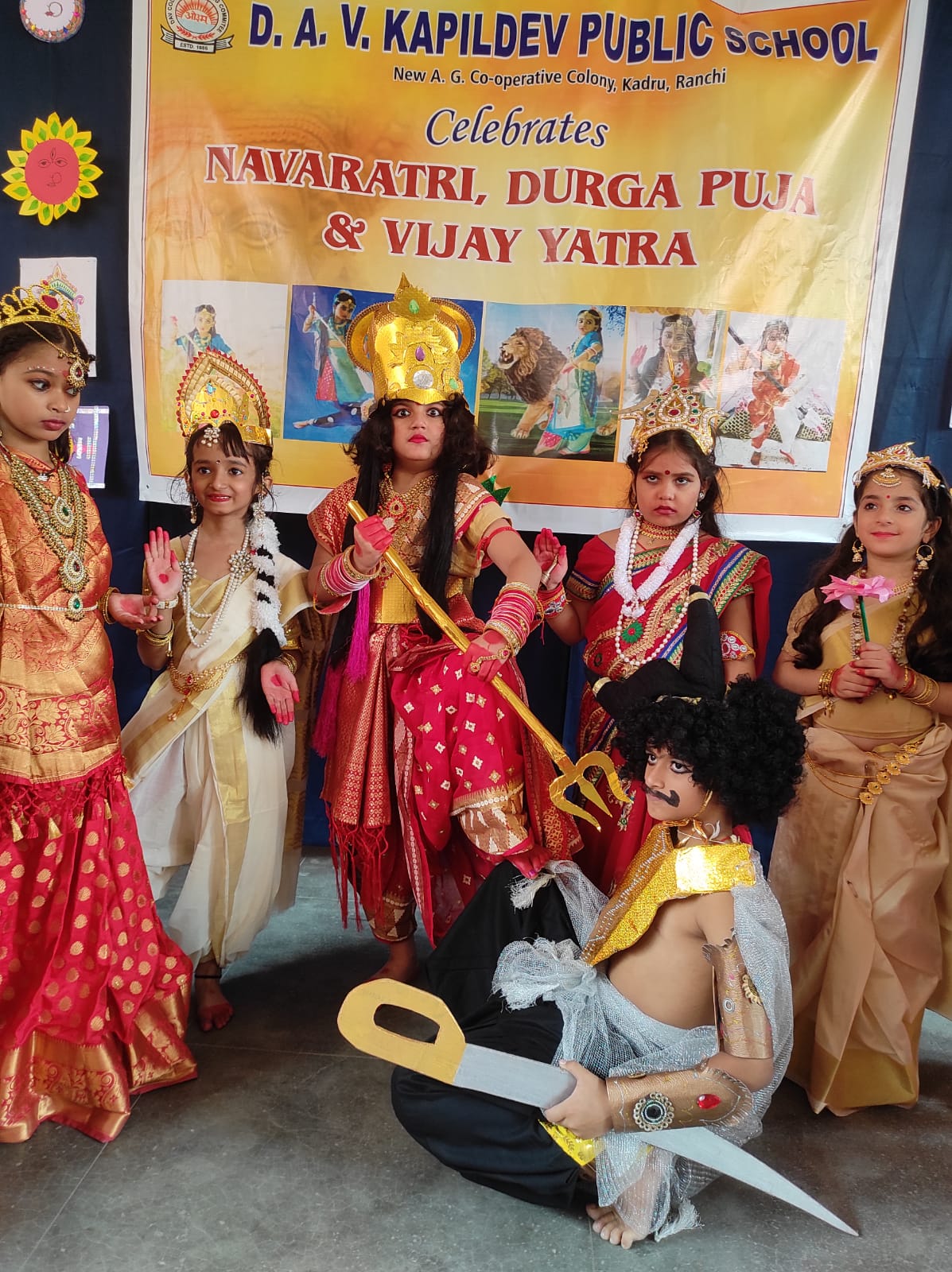 टीम एबीएन, रांची। डीएवी कपिलदेव के एलकेजी, यूकेजी, क्लास वन और टू के बच्चों ने आज दुर्गोत्सव का शानदार आयोजन किया। मौके पर बच्चों ने रामायण, महिषासुरमर्दिनी और देवी दुर्गा के अनेक रूपों का चित्रण किया और माहौल को भक्तिमय बना दिया। मौके पर उपस्थित प्राचार्य एम के सिन्हा ने आने वाली दुर्गा पूजा की बधाई दी। मौके पर विद्यालय के अन्य शिक्षक शिक्षिकाओं के अलावा वरिष्ठ शिक्षक पशुपति नाथ झा भी मौजूद थे। उक्त जानकारी डीएवी कपिलदेव पब्लिक स्कूल कडरू रांची के मीडिया प्रभारी आलोक इंद्र गुरु ने एक प्रेस विज्ञप्ति जारी कर दी।