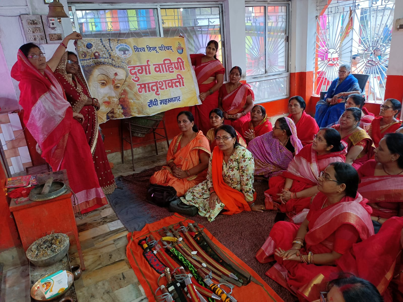 टीम एबीएन, रांची। शुक्रवार आश्विन शुक्ल पंचमी को हेसल अखाड़ा श्री हनुमान मंदिर में मातृशक्ति- दुर्गावाहिनी के द्वारा शस्त्रपूजन कार्यक्रम संपन्न हुआ। मौके पर झारखंड प्रदेश मातृशक्ति प्रमुख दीपारानी कुंज ने उपस्थित माता-बहनों को शस्त्र पूजन एवं दुर्गावाहिनी की स्थापना की बधाई दी। उन्होंने कहा कि जैसे हमारी दुर्गा माता के हाथों में शस्त्र है, वैसे ही सभी बहनों को भी अपने घर मैं शस्त्र रखना चाहिये। मौके पर विश्व हिन्दू परिषद के क्षेत्र मंत्री वीरेन्द्र विमल ने सभी बहनों को नवरात्रि की शुभकामना दी। कार्यक्रम में उषा सिंह, रुक्मिणी देवी, पुष्पा देवी, मीना देवी, आशा देवी, रंजु सिंह, रेणु अग्रवाल, बनानी राय, मौसमी राय, चन्द्रकान्ता देवी, आरती देवी, सहित बड़ी संख्या में महिलाएं उपस्थित हुईं। उक्त जानकारी विहिप के क्षेत्र मंत्री वीरेन्द्र विमल ने एक प्रेस विज्ञप्ति जारी कर दी।