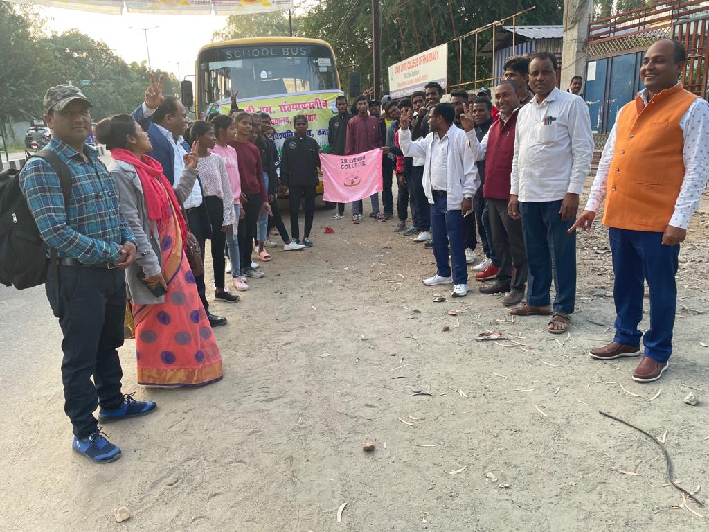 टीम एबीएन, इचाक (हजारीबाग)। इचाक जीएम संध्याकालीन महाविद्यालय, इचाक हजारीबाग में विनोबा भावे विश्वविद्यालय हजारीबाग के तत्वावधान में इंटर कॉलेज फुटबॉल प्रतियोगिता का आयोजन गिरिडीह में 3 और 4 नवंबर को होना है। जिसके लिए जीएम संध्याकालीन महाविद्यालय के खिलाड़ियों को गिरिडीह के लिए महाविद्यालय के प्राचार्य विनय कुमार और सचिव शंभु कुमार ने रवाना किया।फुटबॉल प्रतियोगिता में हिस्सा लेने वाले सभी खिलाड़ियों को शुभकामनाएं दी। प्राचार्य विनय कुमार ने कहा कि विनोबा भावे विश्वविद्यालय के द्वारा जितने भी कार्यक्रम होती है। उसमें हमारा महाविद्यालय हमेशा भाग लेने का कार्य करती है। जिससे महाविद्यालय के सभी विद्यार्थियों में उत्साह और कलाकृतियों को दिखाने का अवसर मिलता है।सचिव शंभु कुमार ने कहा कि हमेशा से जीएम संध्याकालीन महाविद्यालय के जो भी विद्यार्थी किसी भी क्षेत्र में जाने के लिए अपनी इच्छा जाहिर करते है हम उन्हे भरपूर मदद करते हैं। चाहे वह खेल जगत हो, सांस्कृतिक क्षेत्र हो, अभिनय का क्षेत्र हो या अन्य क्षेत्र में जाना चाहते हैं उन्हें हम भरपूर मदद करने और उनके लक्ष्य तक पहुंचाने का कार्य करते हैं। खिलाड़ियों को रवाना करने में शिक्षक रंजन कुमार, रत्नेश कुमार राणा, दयानंद कुमार यादव, उमेश शर्मा, विनय कुमार मेहता एवं सभी शिक्षक मौजूद थे।