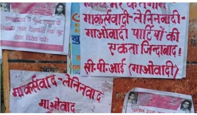चाईबासा। पश्चिमी सिंहभूम के टोकलो थाना क्षेत्र में माओवादियों एक बार फिर अपनी उपस्थिति दर्ज कराते हुए पोस्टरबाजी की। माओवादियों ने भारीनिया चौक पर पोस्टरबाजी की है। घटना शुक्रवार रात की है। इस घटना के बाद से क्षेत्र के लोगों में दहशत का माहौल बना हुआ है।शनिवार सुबह स्थानीय लोगों ने देखा तो मामले की जानकारी पुलिस को दी। जिसके बाद पुलिस ने भारीनिया चौक आकर पोस्टर को अपने कब्जे में लिया और जांच पड़ताल शुरू की। बताया जाता है कि माओवादी के एरिया कमांडर महाराज प्रमाणिक के आत्मसमर्पण करने के बाद यह पहला मौका है। जब माओवादियों ने इस क्षेत्र में पोस्टरबाजी की। पोस्टरबाजी होने से एक बार फिर टोकलो, कुचाई क्षेत्र में दहशत का माहौल फैल गया है। महाराज प्रमाणिक आत्मसमर्पण होने के बाद लोगों में माओवादी संगठन की धमक क्षेत्र में पूरी तरह से कम होने की बात कही जा रही थी, लेकिन पोस्टरबाजी ने एक बार फिर माओवादियों की क्षेत्र में मौजूदगी को स्पष्ट कर दिया है।