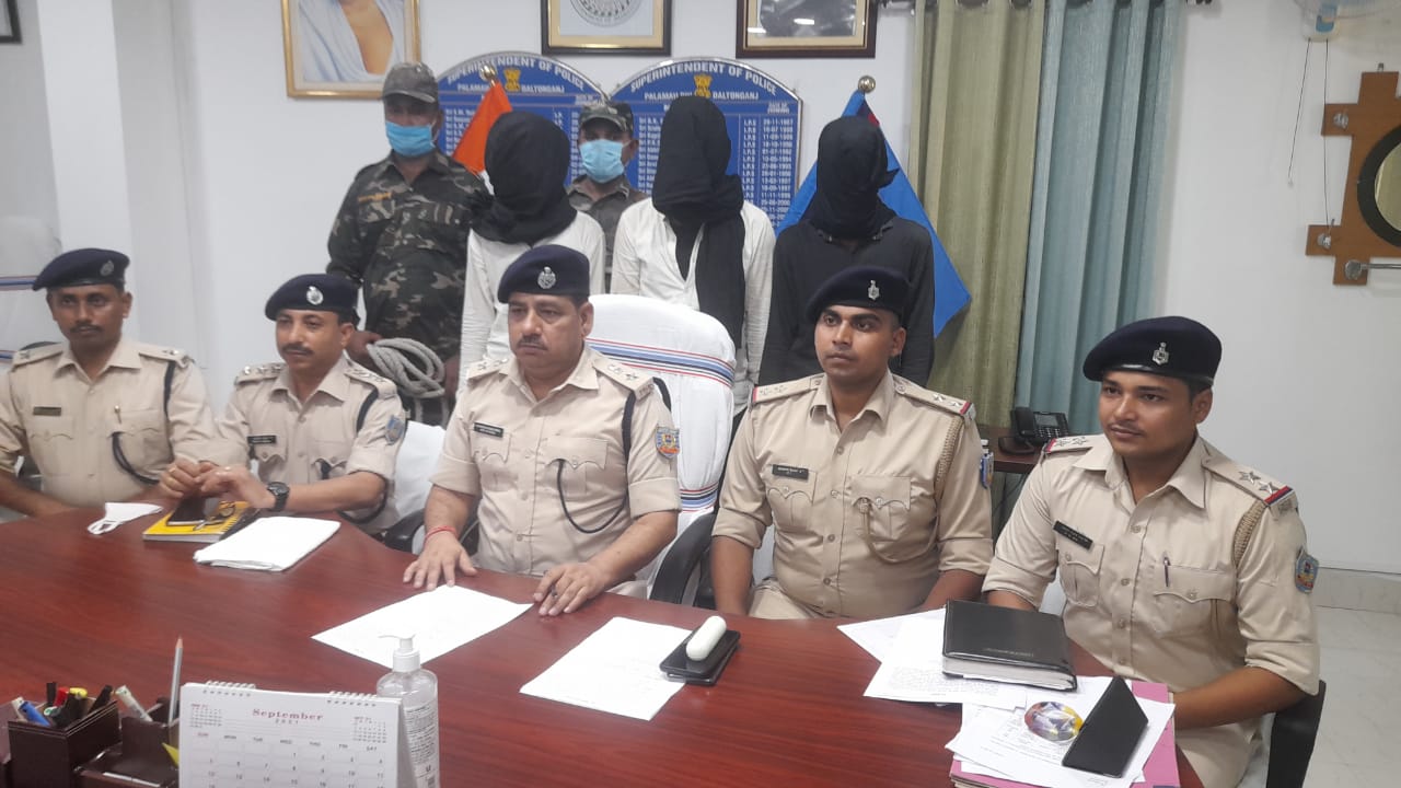 मेदिनीनगर। पलामू पुलिस ने अपहरण कांड का उद्भेदन किया है। अपहरणकर्ताओं ने फिरौती की मांग को लेकर एक नाबालिग का अपहरण कर लिया था। इस मामले में नाबालिग के पिता अशोक पासवान ने पुलिस को सूचना दी कि बीते रविवार की अपराह्न 4:30 बजे मेरे पुत्र का अपहरण अज्ञात लोगों ने कर लिया है। इस मामले में पुलिस अधीक्षक चंदन कुमार सिन्हा ने त्वरित कार्रवाई करते हुए विश्रामपुर एसडीपीओ सुरजीत कुमार के नेतृत्व में एक छापेमारी टीम गठित की। टीम ने तकनीकी सहायता केंद्र एवं गुप्त सूचना के आधार पर अपहरण कांड में शामिल तीन अपहरणकर्ताओं को शहर थाना क्षेत्र के बारालोटा से गिरफ्तार कर लिया है। एसपी ने प्रेस वार्ता कर बताया कि नाबालिग नौवीं कक्षा का छात्र है। उसके पिता विद्युत विभाग में ठेकेदार हैं। इसके नाबालिग पुत्र को बीते रविवार को अपहरणकर्ताओं ने मारुति कार से अपहरण कर लिया तथा उसे हथियार का भय दिखाया गया ताकि हल्ला न कर सके। अपहरणकर्ता उसे पिढ़ीया जंगल में छुपा कर रखे थे। एसपी ने बताया कि छोटू चंद्रवंशी पिता सुनील राम चंद्रवंशी (बारालोटा) ने उस नाबालिग को अपने पास बुलाया और बातचीत में उसे मारुति कार में जबरन बैठा लिया। इस मामले में पुलिस ने छोटू के साथ ही शुभम शुक्ला पिता अरविंद शुक्ला ग्राम बरवाडीह पाटन, चितरंजन मेहता पिता श्रीकांत महतो ग्राम पिढीया, शहर थाना को गिरफ्तार किया गया है। इनकी निशानदेही पर अपहृत के साथ मारुति कार, एक बाइक, दो गोली के साथ एक पिस्टल, एक मोबाइल बरामद किया गया। छापेमारी अभियान में एसडीपीओ सुरजीत कुमार के अलावा चैनपुर थाना प्रभारी उदय कुमार गुप्ता, सदर थाना प्रभारी कमलेश कुमार, रामगढ़ थाना प्रभारी प्रभात रंजन राय, आरक्षी अमित उपाध्याय, छोटन राम, देवेंद्र कुमार रजक, गोपाल दुबे, विजेंद्र कुमार, प्रेम पासवान, ब्रह्मदेव रविदास, निरंजन कुमार, अर्जुन राम, दिनेश तिवारी, सुनील कुमार यादव, सहदेव राम, रवि कुमार, सुधीर कुमार पांडेय व अन्य शामिल थे। कृष्णा दुबे हत्याकांड का पुलिस ने किया उदभेदन, पांच गिरफ्तार : मेदिनीनगर/ पाटन। पाटन थाना क्षेत्र के ग्राम बरसैता महिंद्रा मोड़ के पास कृष्णा दुबे की हत्या अज्ञात अपराध कर्मियों ने 19 अगस्त को तेज धारदार हथियार से गला रेत कर कर दी थी। जिले का चर्चित यह मामला पुलिस के लिए चुनौतीपूर्ण भी था। इसके उद्भेदन के लिए एसपी चंदन कुमार सिन्हा ने एसआईटी टीम गठित कर त्वरित उद्भेदन का निर्देश दिया था। टीम लगातार गुप्त सूचना के आधार पर छापेमारी अभियान चलाती रही। इस मामले में 5 लोगों को गिरफ्तार किया गया। इनकी निशानदेही पर तीन देसी कट्टा, दो बाइक, एक भुजाली, 5 मोबाइल बरामद किये गये हैं। एसपी चंदन कुमार सिन्हा ने प्रेस वार्ता कर बताया कि मृतक के पिता नारद द