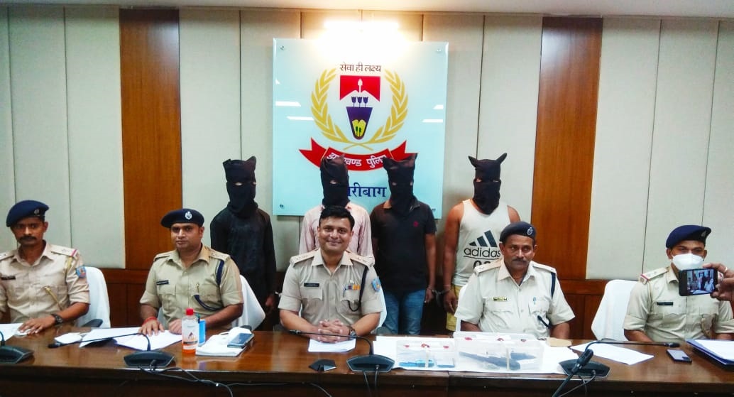 हजारीबाग। हजारीबाग पुलिस को एक बड़ी सफलता मिली है। इस बात की जानकारी एसपी मनोज रतन चौथे ने मंगलवार को पे्रस वार्ता कर दी। उन्होंने बताया कि उन्हें गुप्त सूचना मिली थी कि कुछ अपराधी एक बड़ी घटना को अंजाम देने के लिए कनहरी पहाड़ के इलाके में जमें हुए हैं। जिसके बाद छापामारी दल का गठन किया गया। इसी क्रम में चार अपराधियों को पुलिस ने कनहरी पहाड़ के पास एनएच 33 पर बने पुल के पूरब जंगल में धर दबोचा। गिरफ्तार अपराधियों में 22 वर्षीय शुभम कुमार, 22 वर्षीय सुमित राज, 19 वर्षीय प्रीतम कुमार जिला नालंदा बिहार के निवासी हैं। वहीं 27 वर्षीय विवेक कुमार इचाक जिला हजारीबाग का रहने वाला है। हालांकि इस दौरान तीन अपराधी जंगल का फायदा उठा कर भाग गए। इसमें फरार छोटू हजारीबाग के कटकमदाग स्थित रामनगर का रहने वाला है। पकड़े गए अपराधियों के पास से दो पीस देशी कट्टा, 8 एमएम का 4 जिंदा कारतूस, 9 एमएम का 2 जिंदा कारतूस, 4 मोबाइल, टाटा टिगोर कार, बुलेट बाइक और लोहे का भुजाली बरामद की गयी है। कहा कि पुलिस टीम फरार अपराधियों की धर पकड़ में जुटी है।