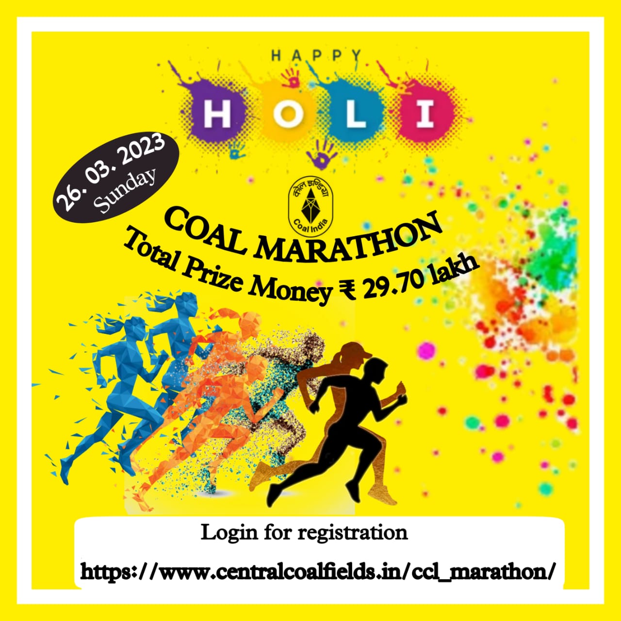रजिस्ट्रेशन के लिए https://www.centralcoalfields.in/ccl_marathon/ लिंक पर लॉगिन किया जा सकता है।