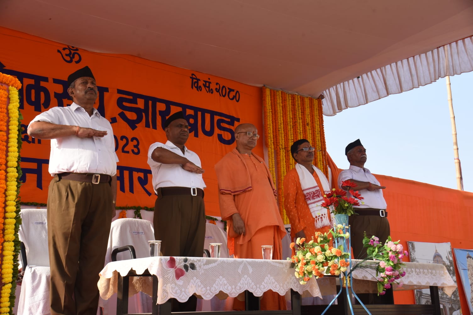 झारखंड प्रथम वर्ष संघ शिक्षा वर्ग - समापन समारोह के मुख्य अतिथि : प. पू.स्वामी भवेशानन्द जी, विशिष्ट अतिथि डॉ सुखी उरांव जी, वर्गाधिकारी श्री सकलदेव जी, क्षेत्र प्रचारक श्री रामनवमी जी, प्रांत संघचालक श्री सच्चिदानंद लाल जी मंच पर उपस्थित थे।आज के इस समापन कार्यक्रम में लोहरदगा के सै हीकड़ों गणमान्य बंधु भगिनी सहित प्रांत के अनेक प्रबुद्ध नागरिक उपस्थित थे।