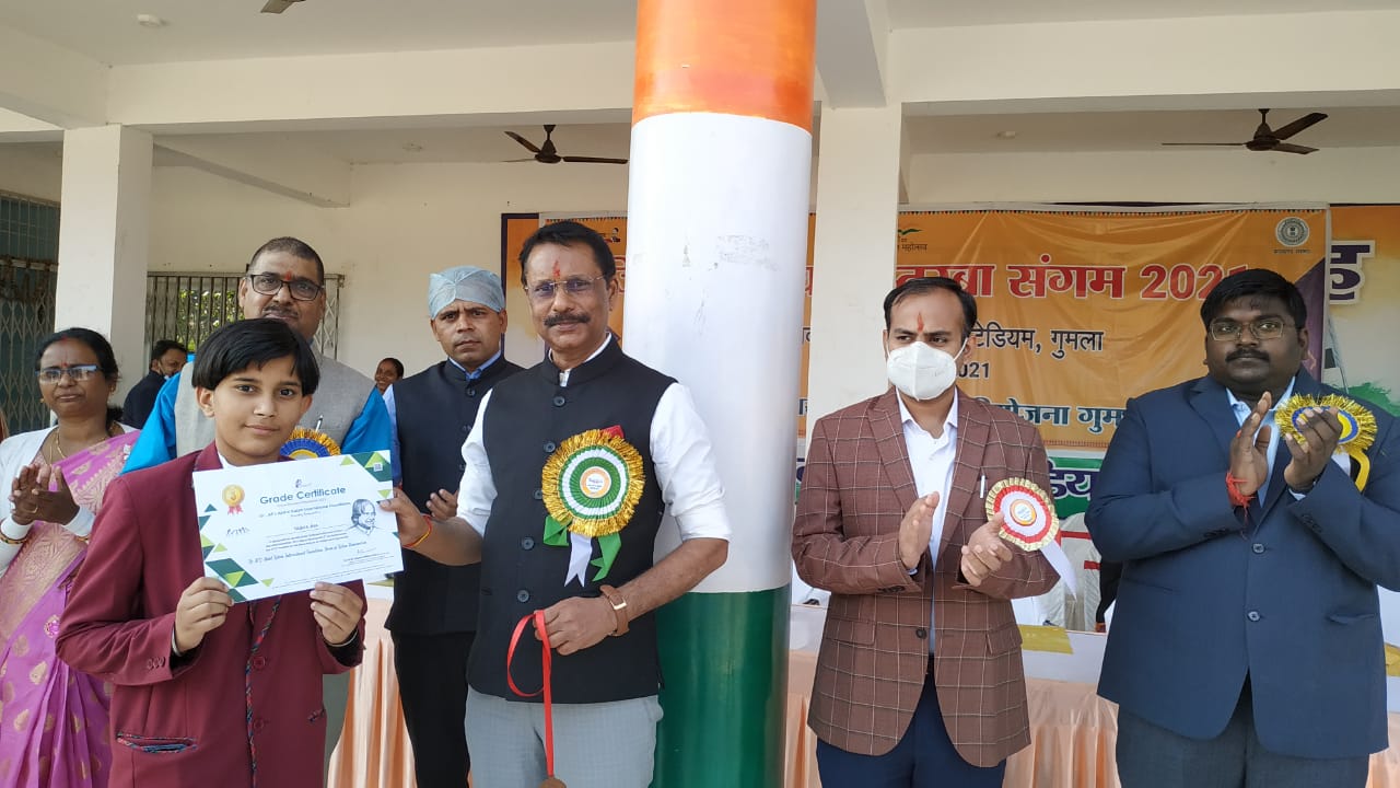 गुमला। डॉ एपीजे अब्दुल कलाम के छठे स्मरण दिवस के उपलक्ष्य में डॉ एपीजे अब्दुल कलाम इंटरनेशनल फाउंडेशन रामेश्वरम द्वारा जुलाई माह में आयोजित आनलाइन भाषण प्रतियोगिता में डीएवी स्कूल की कक्षा अष्टम की छात्रा ताश झा ने पूरे देश में तीसरा स्थान प्राप्त कर जिले का नाम गौरवान्वित किया है। जिसे मंगलवार को परमवीर अलर्ब्ट एक्का स्टेडियम में आयोजित एक कार्यक्रम के दौरान उपायुक्त शिशिर कुमार सिन्हा, डीडीसी कर्ण सत्यार्थी व एसडीओ रवि आनंद ने मेडल व सर्टिफिकेट देकर सम्मानित किया। उक्त प्रतियोगिता में देश भर से करीब एक हजार प्रतिभागियों ने भाग लिया था। प्रतियोगिता का विषय बियॉन्ड इंडिया विजन 2020 चुनौतियां और अवसर था। उपायुक्त ने ताशा झा का हौसला अफजाई करते हुए कहा कि तुम्हें रूकना नहीं है,जीवन में आगे बढते जाना है और गुमला का नाम पूरे विश्व में रौशन करना है। साथ ही कहा कि यह एक होनहार बच्ची है। डीईओ श्री सुरेंद्र कुमार पांडेय ने ताशा की उपलब्धि पर उसके माता पिता और विद्यालय को बधाई दी है। ताशा की मां श्रीमती सोनाली त्रिपाठी तथा पिता श्री अभिजीत झा शिक्षक हैं। डीएवी गुमला के प्रधानाचार्य डॉ रामाकांत साहु, सुपरवाइजरी हेड श्री पवित्र कुमार मोहंती एवं श्री जीवन कुमार पांडेय तथा अन्य शिक्षकों ने भी ताशा को राष्ट्रीय स्तर पर उपलब्धि हासिल करने पर बधाई दी है।