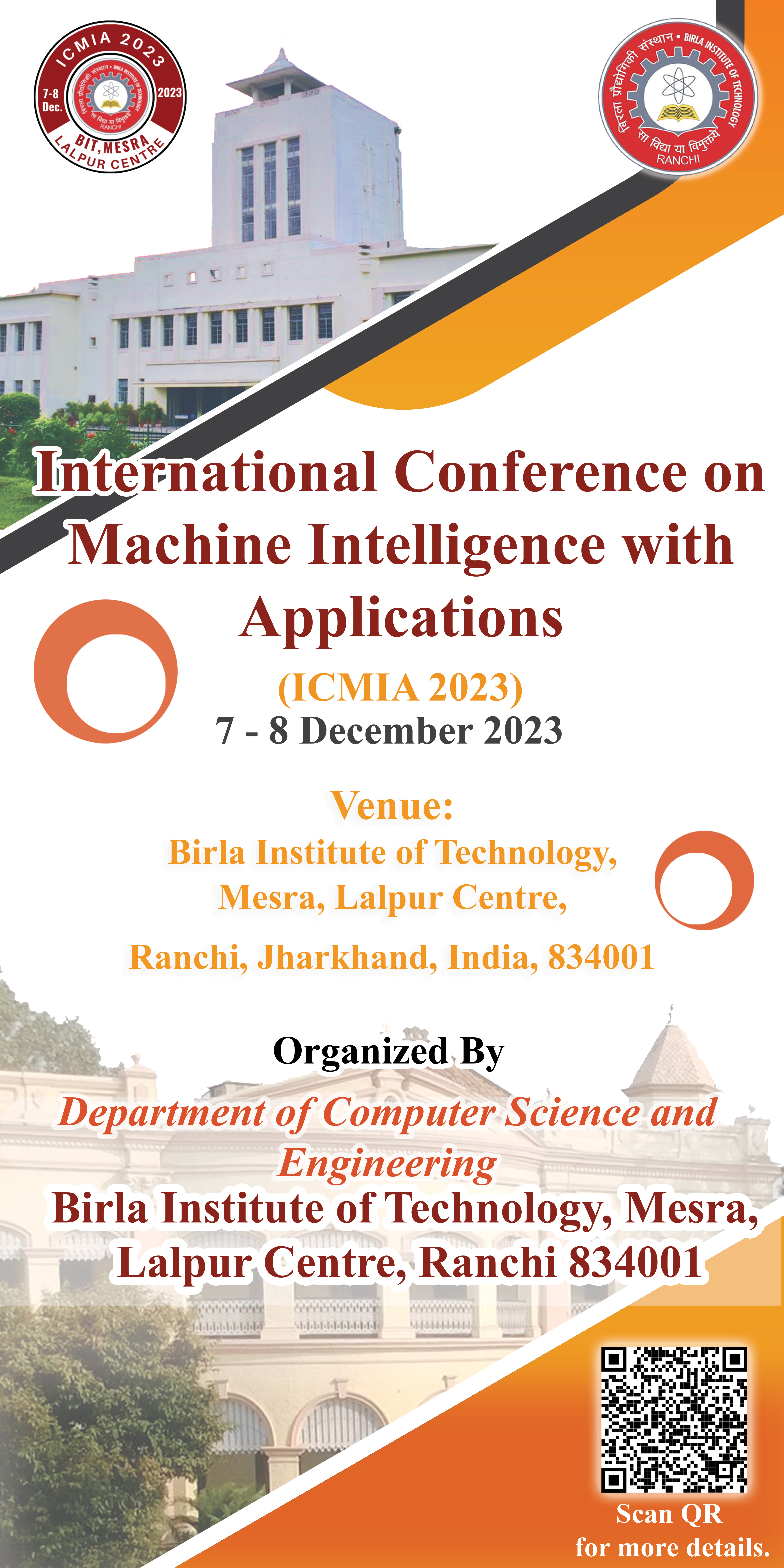 टीम एबीएन, रांची। बीआइटी मेसरा कंप्यूटर साइंस और इंजीनियरिंग विभाग के द्वारा आयोजित दो दिवसीय कार्यक्रम का अयोजन लालपुर सेंटर के तत्वावधान में आयोजित होने जा रहा है। इस आयोजन का विषय है- अंतराष्ट्रीय मशीन बुद्धिमत्ता के साथ प्रयोग।