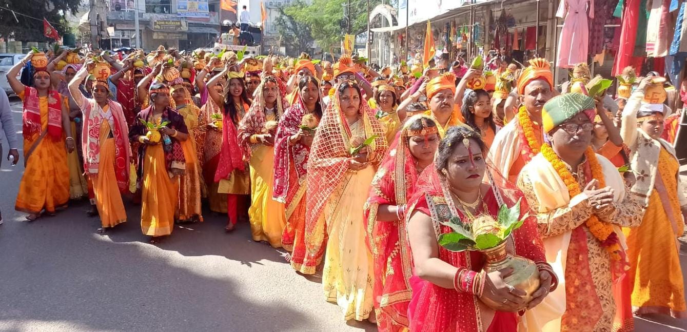 आचार्य जयशंकर मिश्र ने श्रधालुओं को संबोधित करते हुए बताया कि विश्व कल्याण हेतु कलश यात्रा का आयोजन किया जाता है। कलश यात्रा में श्रद्धालु जितना पद कलश लेकर चलते हैं उतना अश्वमेध यज्ञ का फल प्राप्त होता है। वेदी स्थापना, सर्व देव पूजन से मनोकामनाओं की पूर्ति होती है।