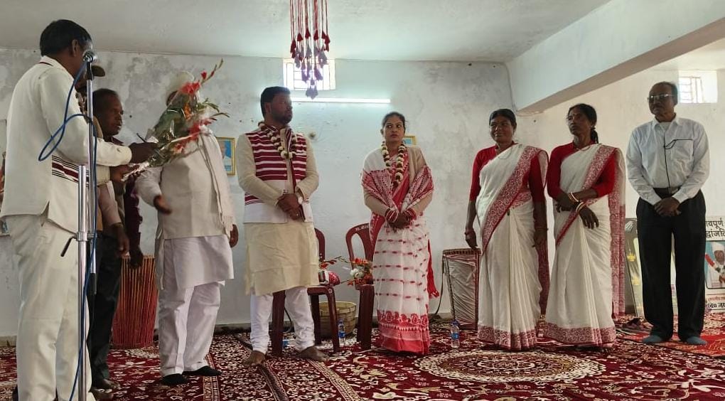 टीम एबीएन, लोहरदगा। शुक्रवार को एम जी रोड वीर शिवाजी चौक लोहरदगा स्थित झखरा कुम्बा में ईसाई धर्म परिवर्तन करने वाले परिवार आज सरना धर्म में घर-वापसी कार्यक्रम आयोजित किया गया। दिव्या एक्का रांची खादगढ़ा निवासी का सरना धर्म में घर वापसी की गयी।